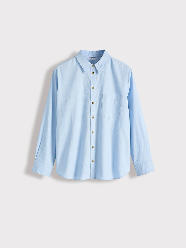 Striped Long-Sleeve Linen-Blend Shirt