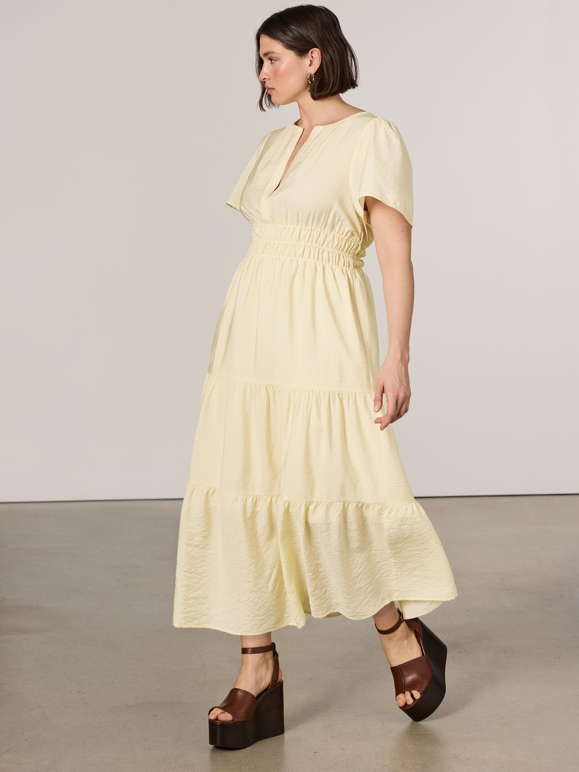 Short-Sleeve Split-Neck Maxi Dress
