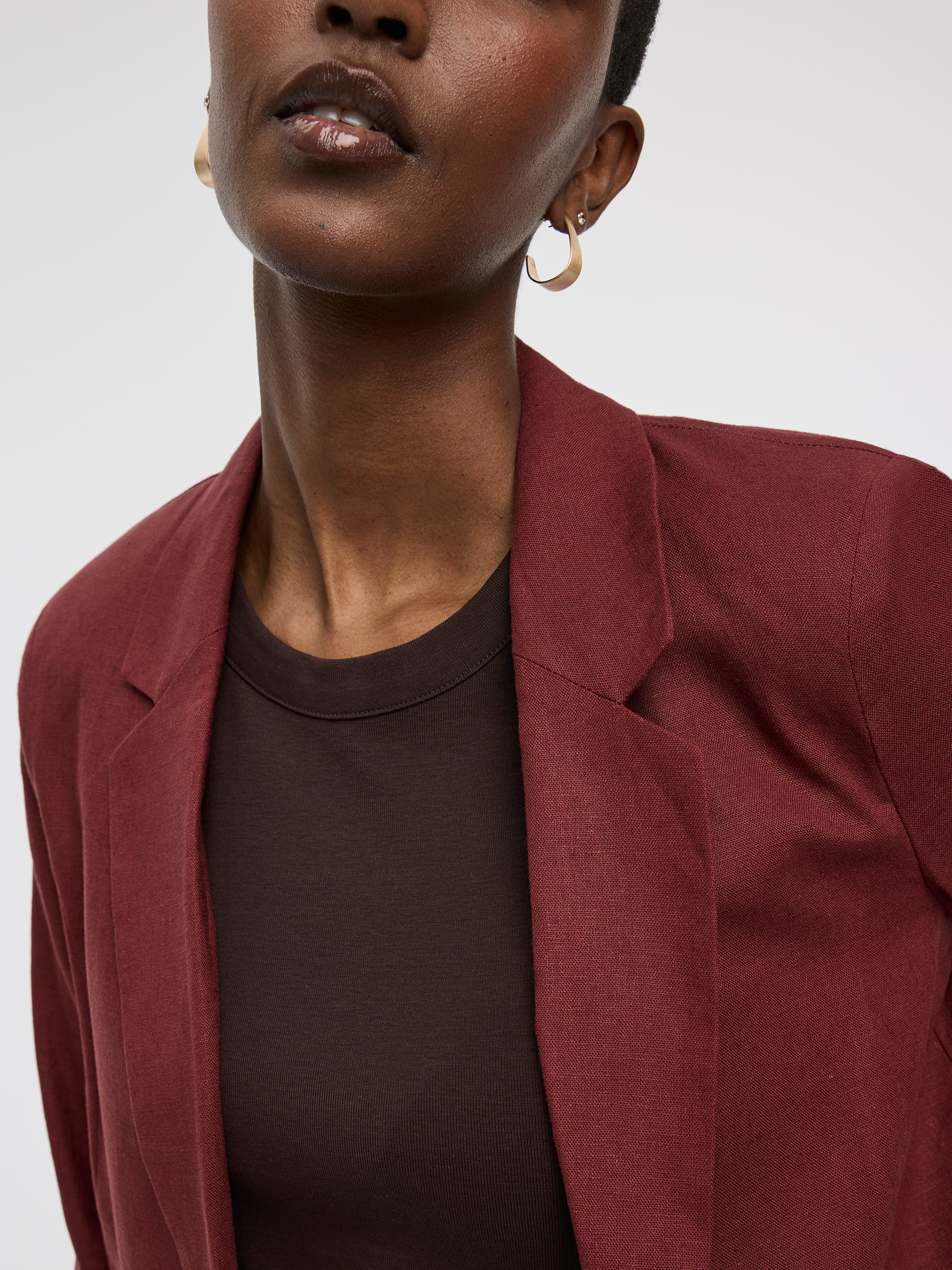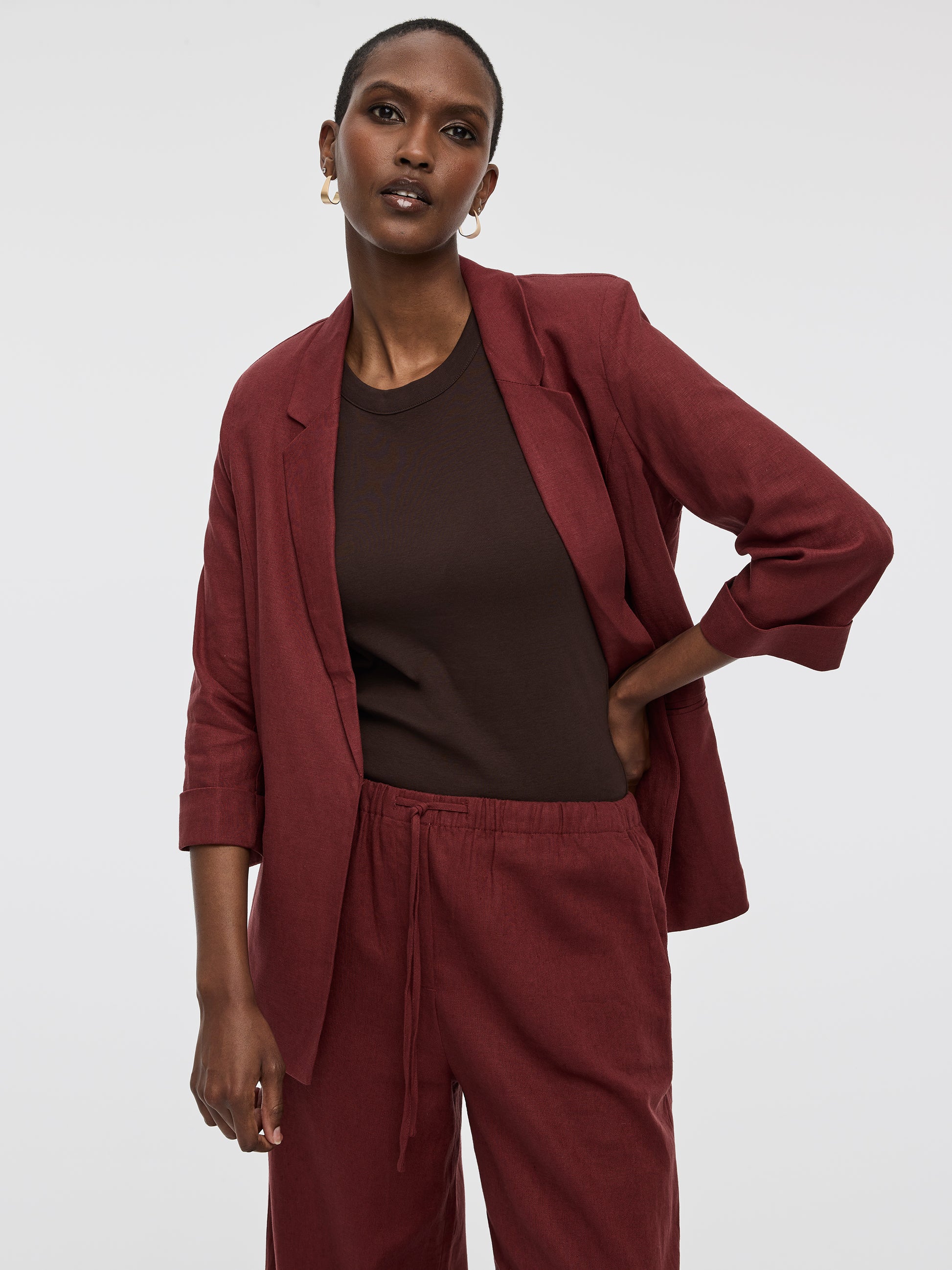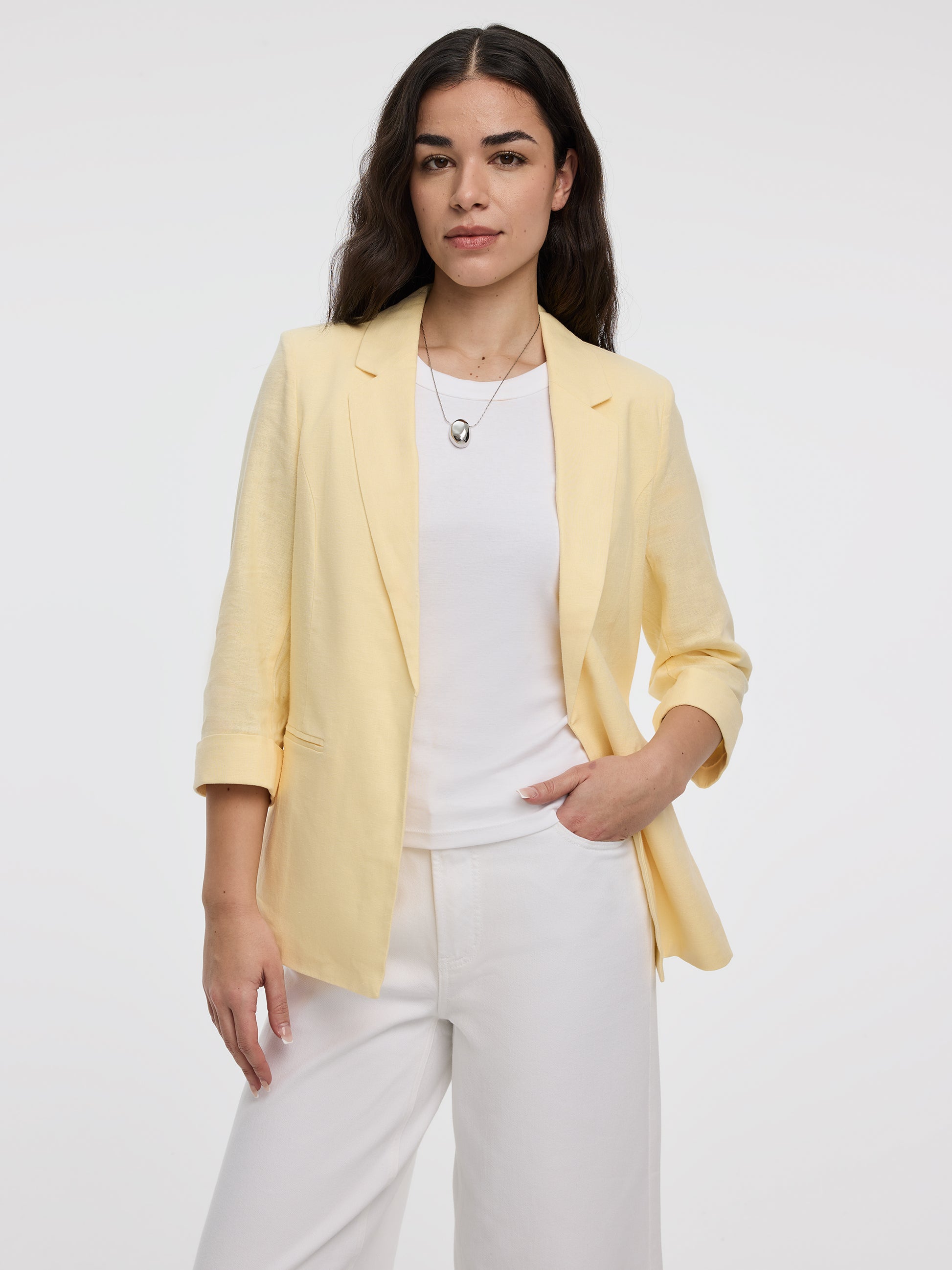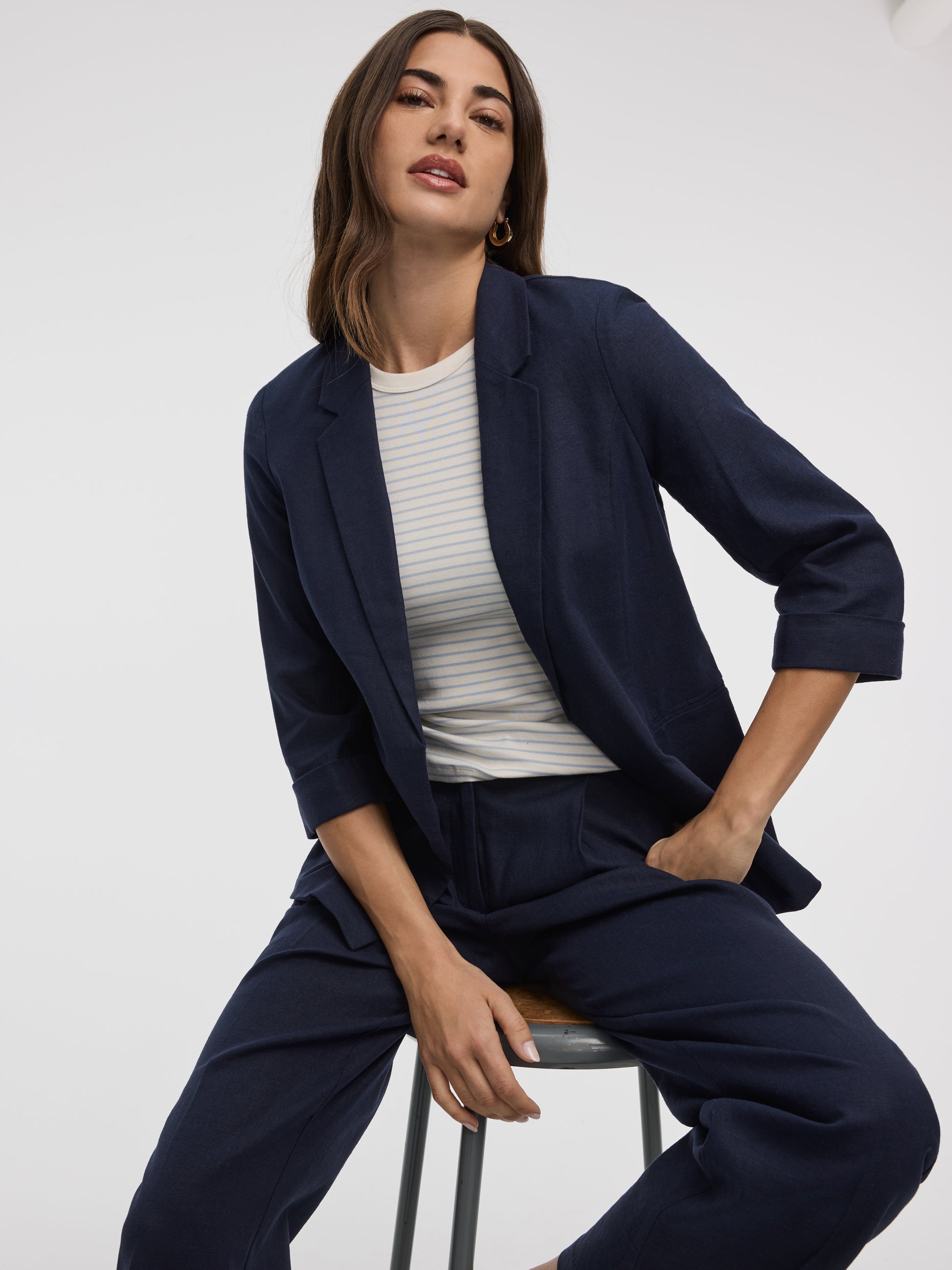 Add a business-ready touch to any of your outfit with this elegant linen blazer featuring 3/4 sleeves. Perfect for summer, you can never go wrong with this piece.