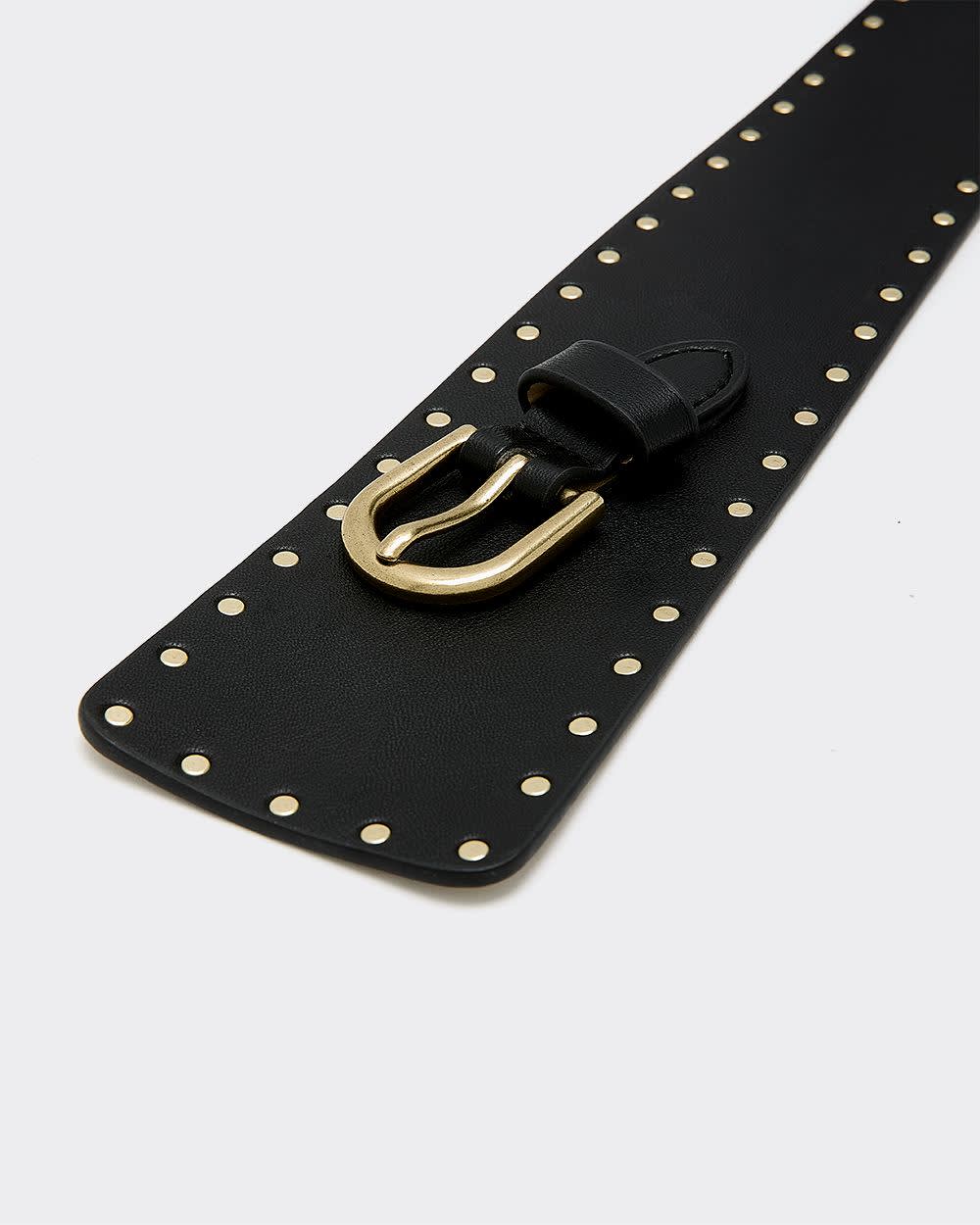 Asymmetrical Faux Leather Belt with Studs