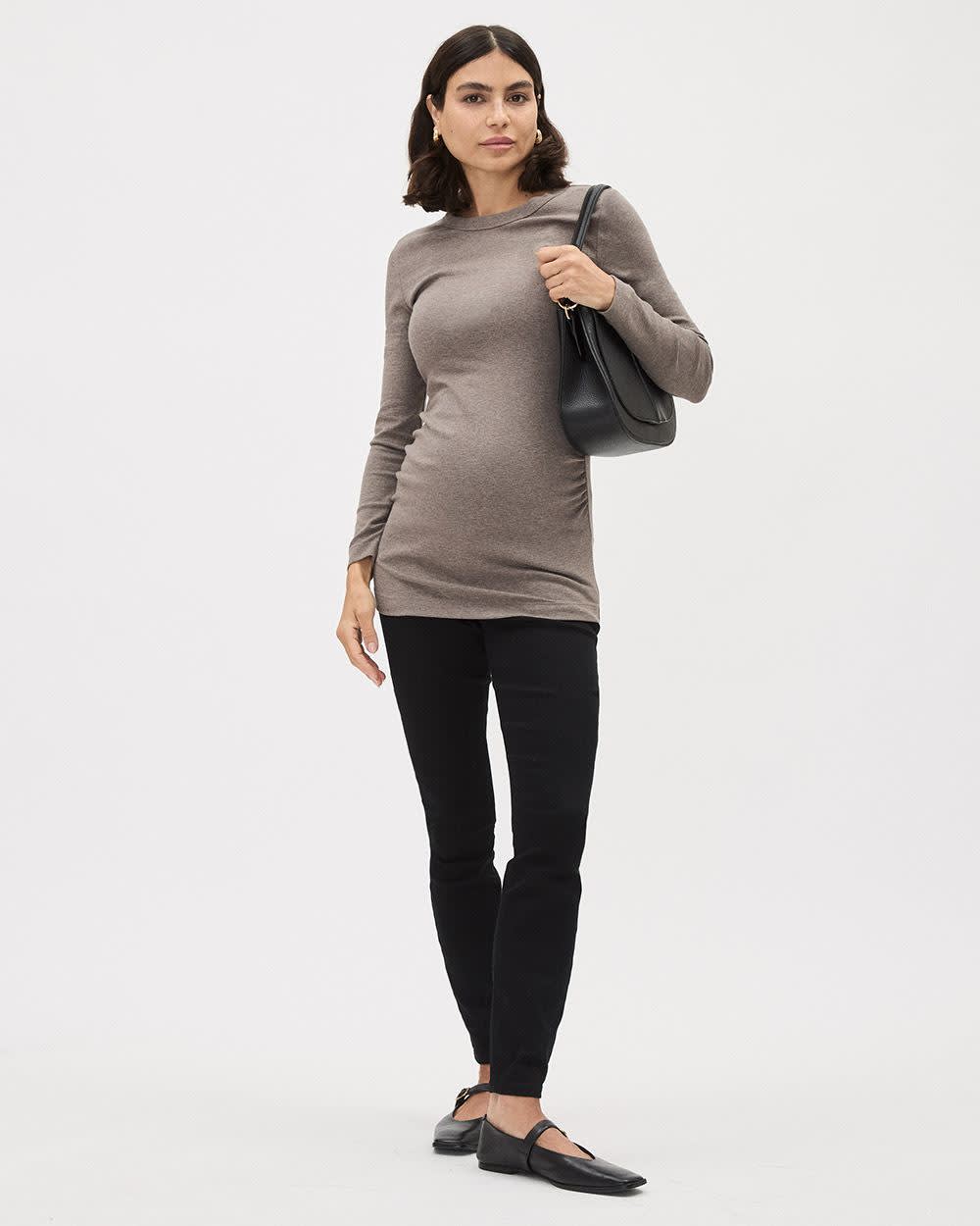 Pregnant or not, you need a pair of black pants in your wardrobe. Opt for these pull-on jeggings made in a soft cotton blend featuring that is super stretch and comfortable. Plus, these jeggings feature a microfibre belly band to provide optimal comfort and support to your growing belly. A definite must-have.