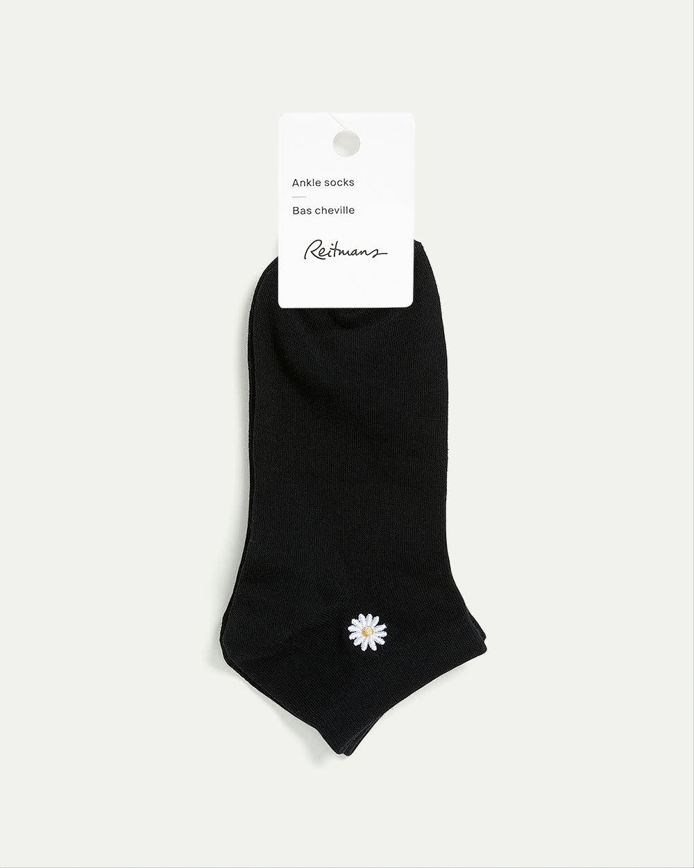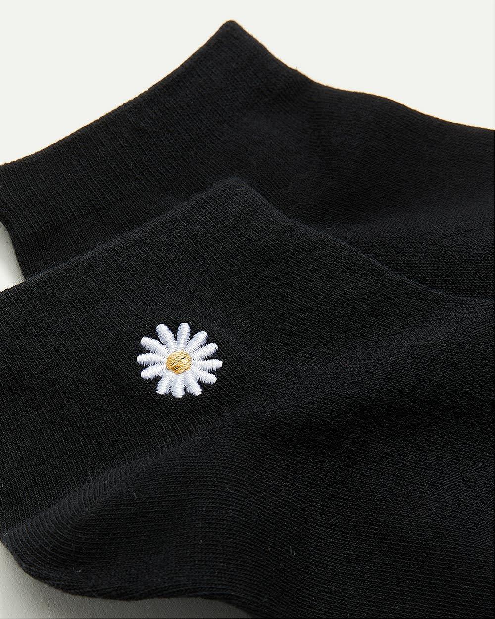 "Add a touch of style to your look with this pair of soft cotton-blend socks featuring a tiny embroidered daisy at hem.