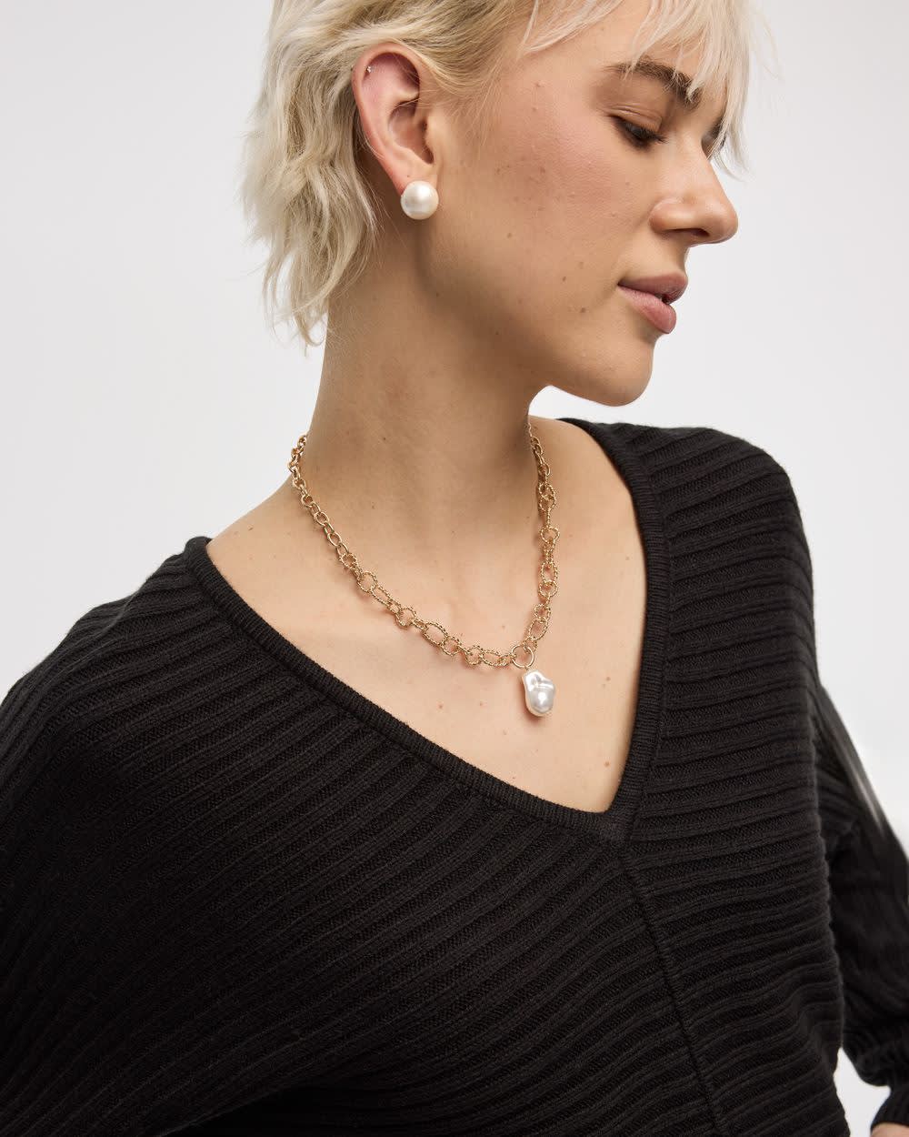 Long-Dolman-Sleeve V-Neck Ribbed Pullover