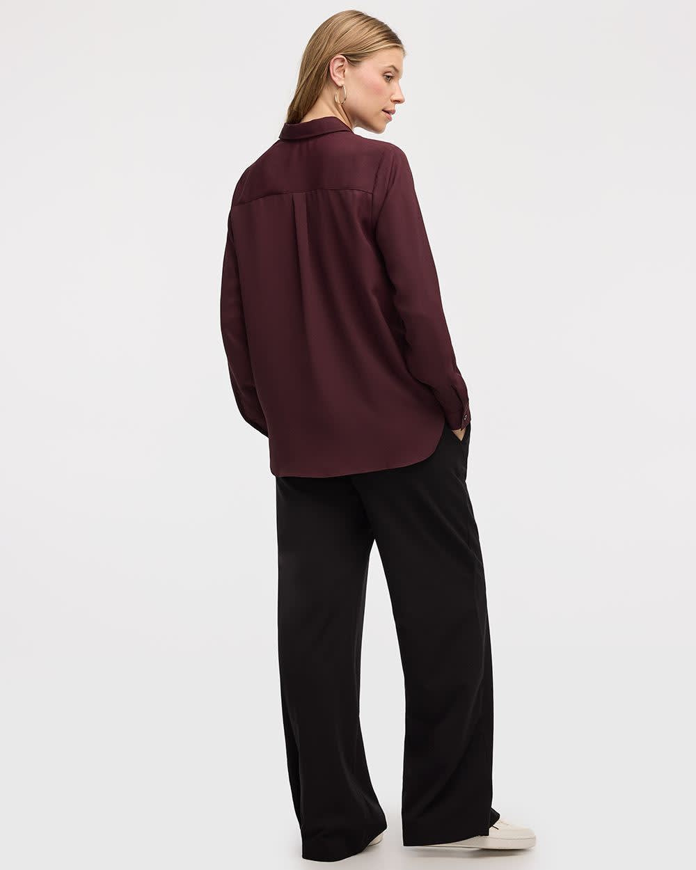 This blouse featuring a cute shirt collar will provide you with ultimate comfort and instant elegance, perfect for a day at the office or dinner with friends.