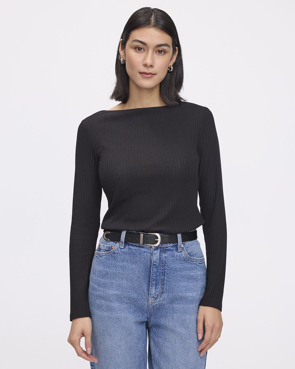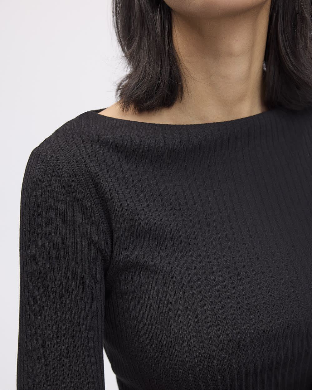 Made in a soft ribbed knit, this long-sleeve top featuring a boat neckline is perfect for everyday wear.