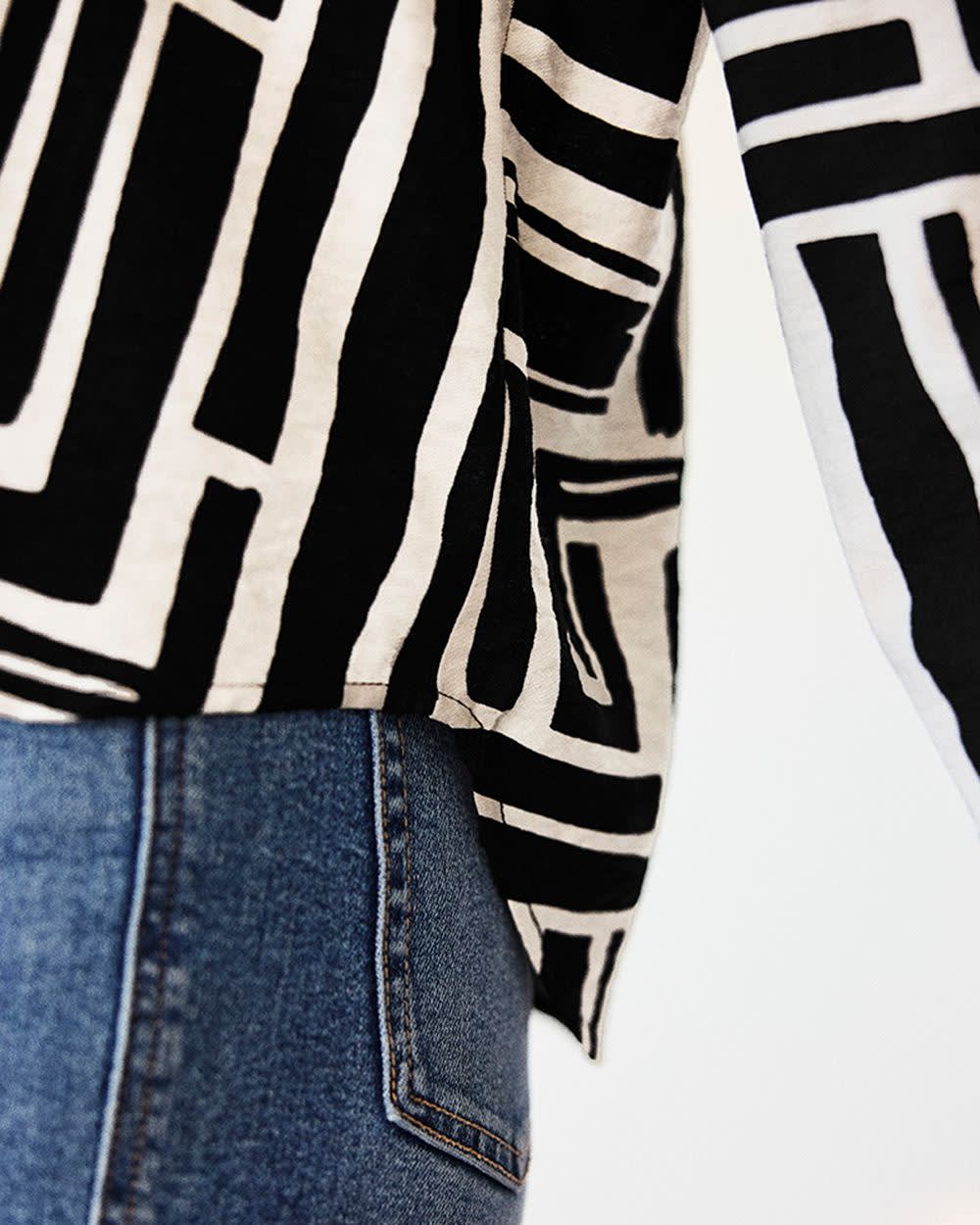 This long-sleeve blouse topped with a notch collar pairs perfectly with any bottom, for a casual or chic look. Wear it on its own or open on top of a tank top .