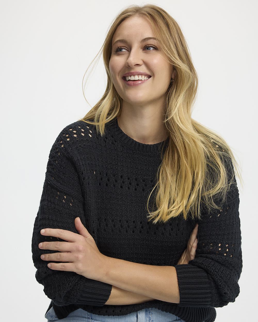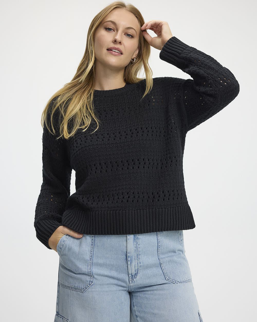 Long-Sleeve Crew-Neck Open-Stitch Pullover
