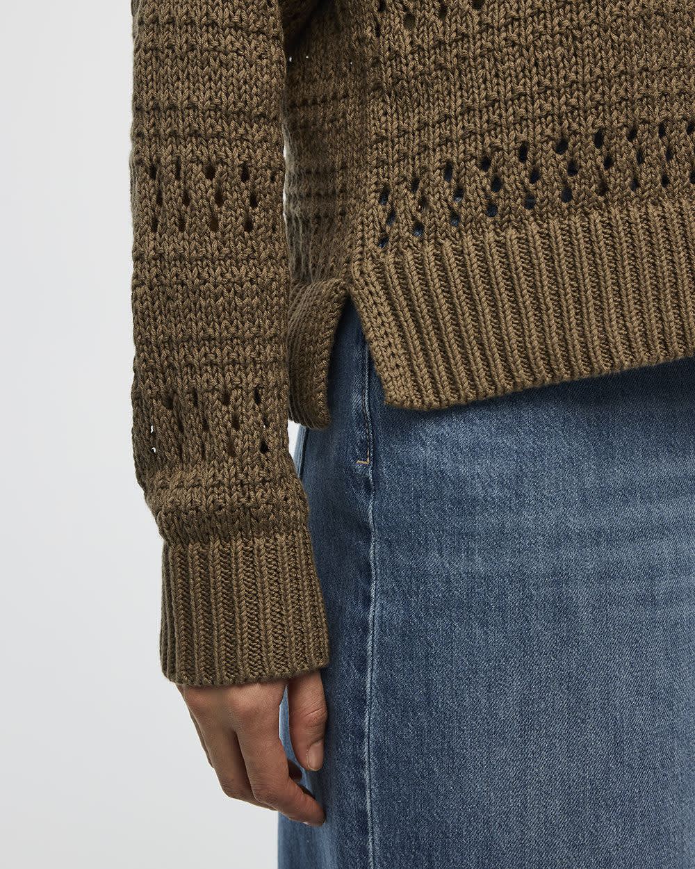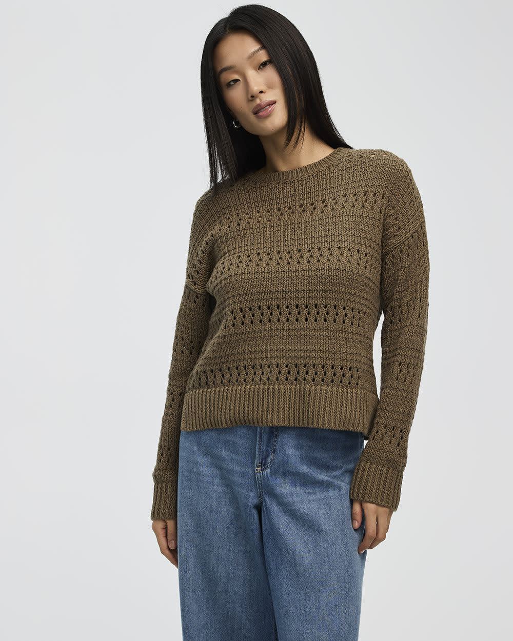 Wear this lovely long-sleeve pullover designed with open stitches with a pair of jeans for a trendy casual look.