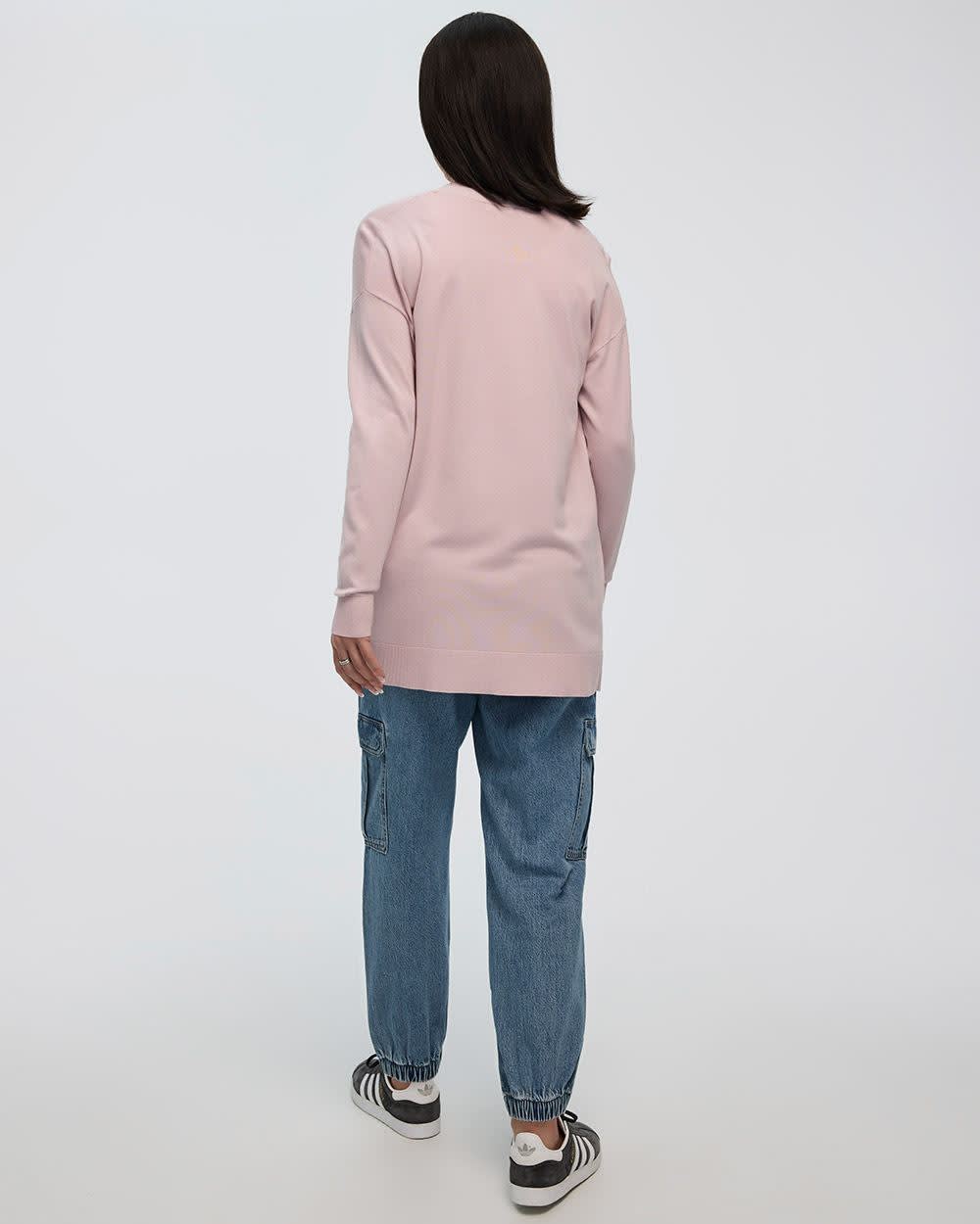 Cozy up in this tunic-length open cardigan made in a super comfortable stretch knit. The perfect layer for your everyday life.