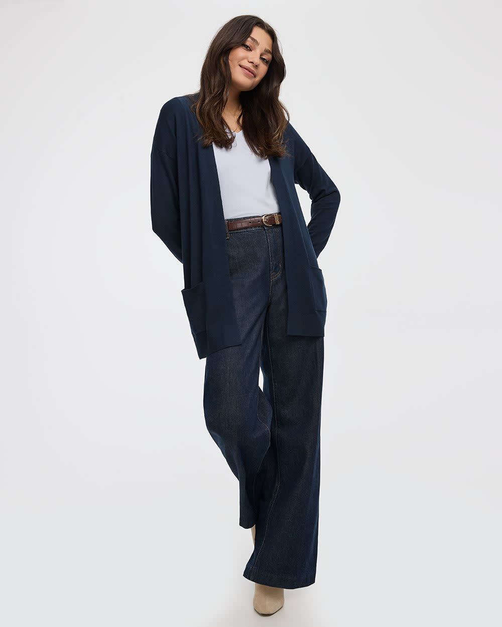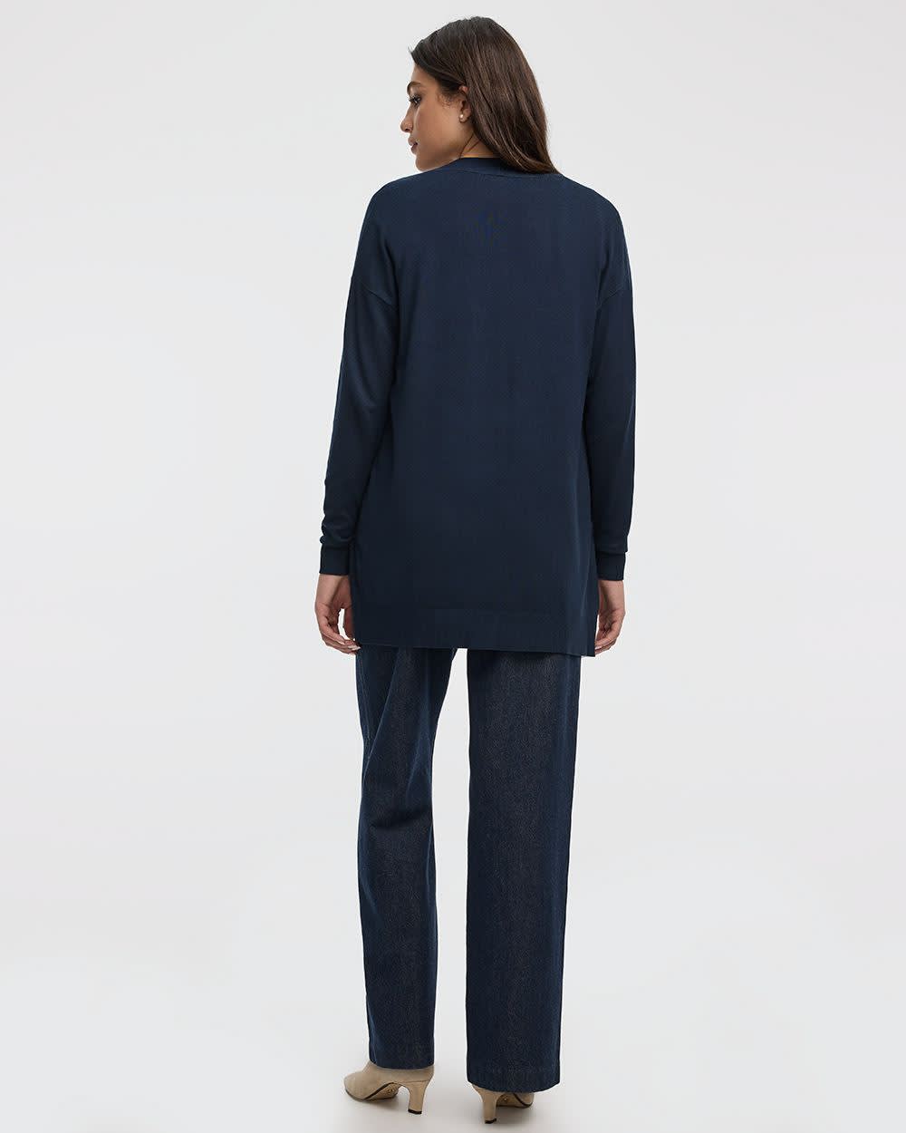 Cozy up in this tunic-length open cardigan made in a super comfortable stretch knit. The perfect layer for your everyday life.