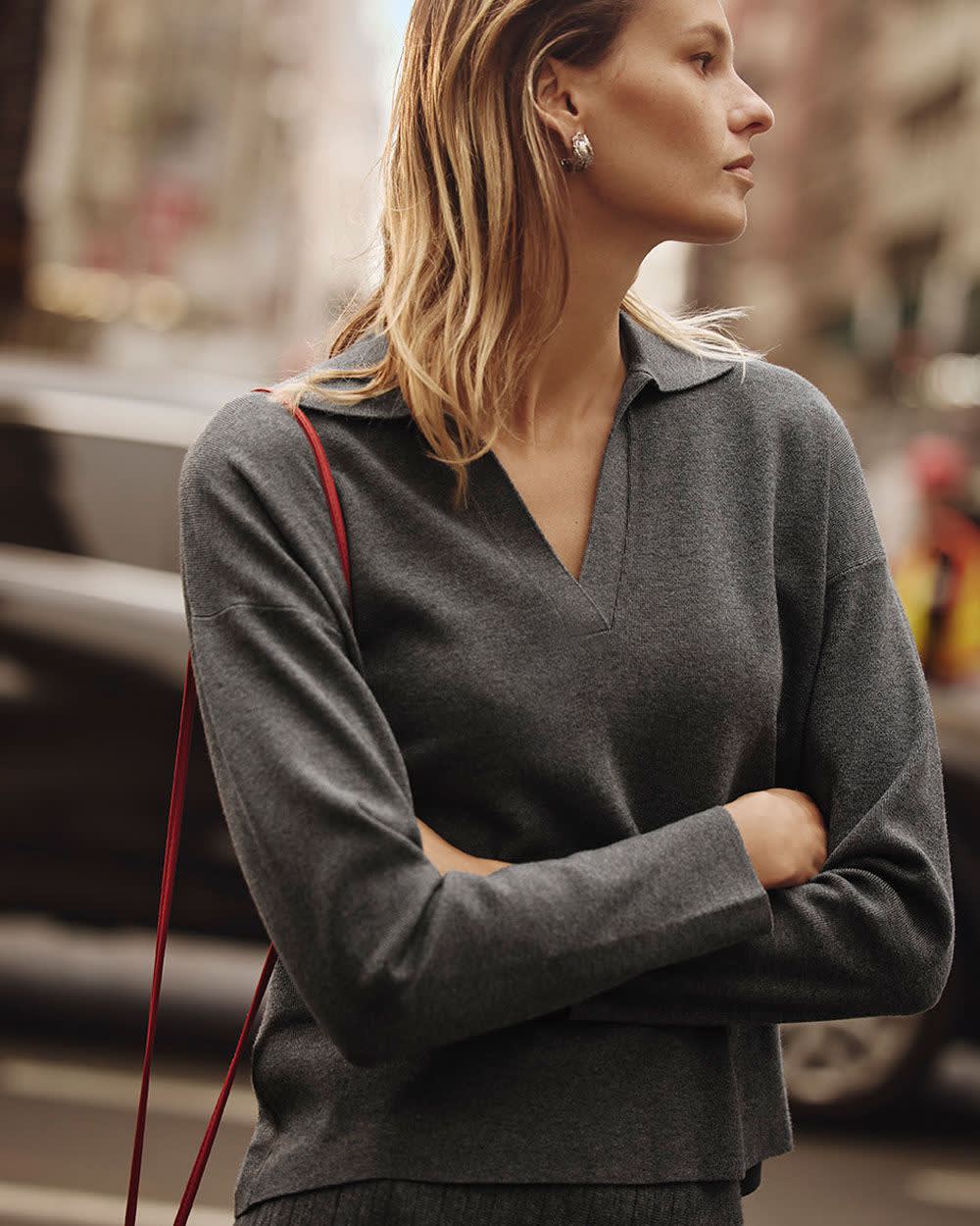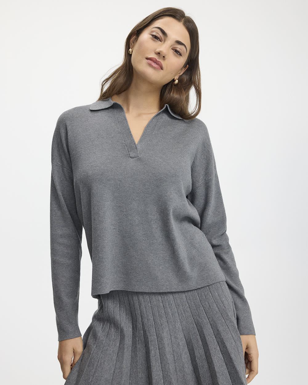 "This long-sleeve sweater featuring a Johnny collar is perfect for everyday wear, made in a soft knit for ultimate comfort.