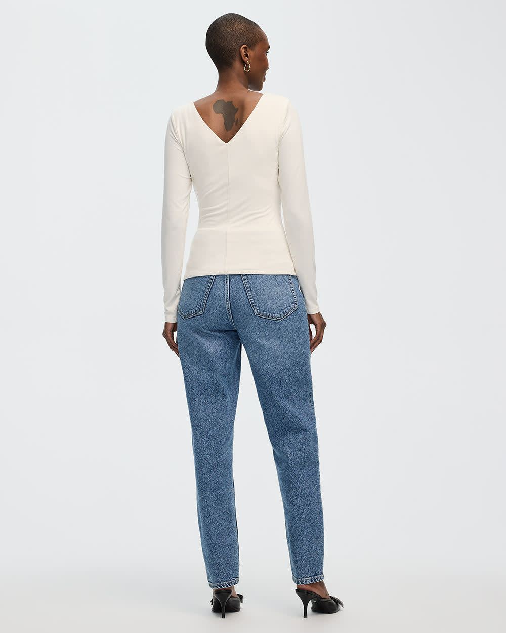 "This long-sleeve top featuring an adorable V neckline in the front and in the back is perfect for everyday wear. Made in super-soft EcoCosy knit for ultimate comfort.