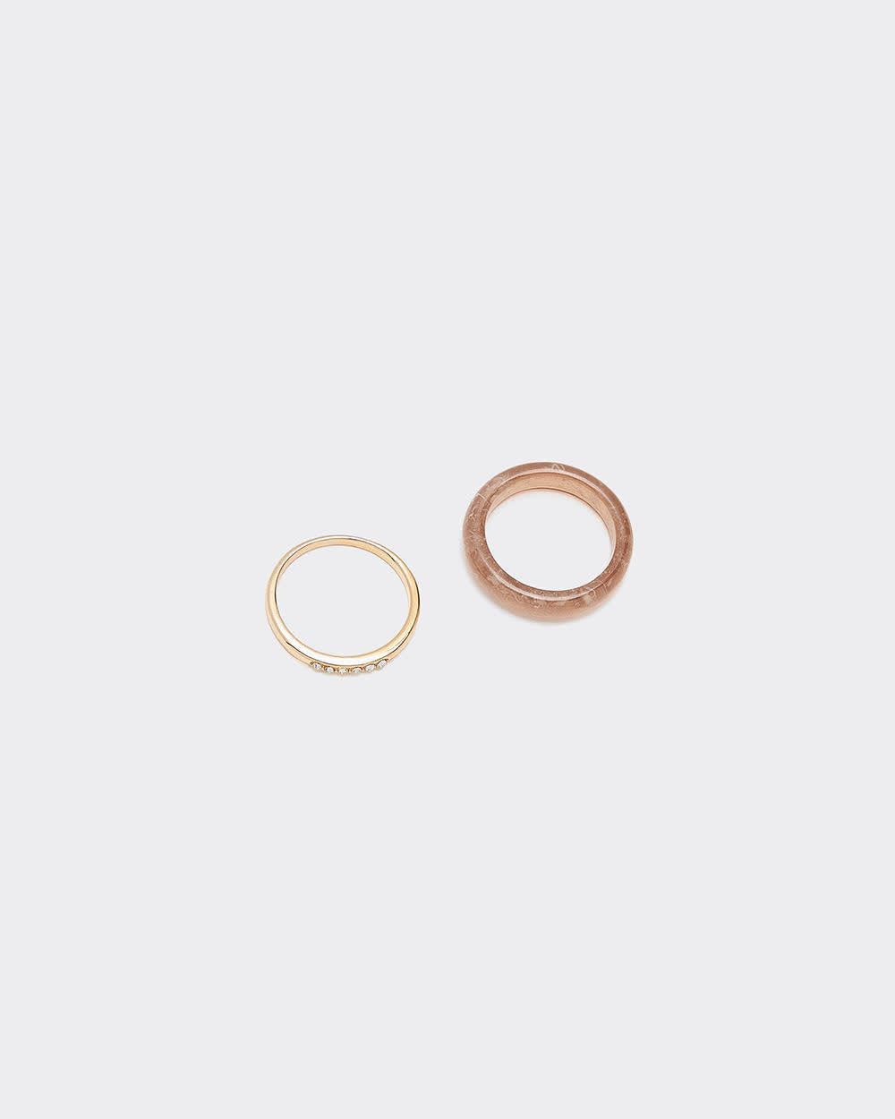 "Add a touch of colour to your outfit with this set of super stylish rings, one of which is made of metal and the other of resin.