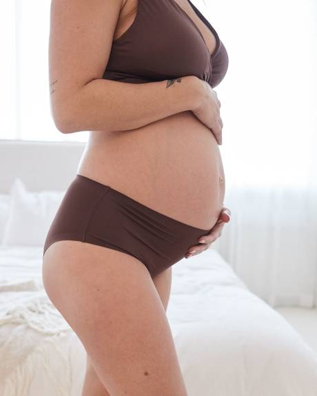 With its ultra-soft microfibre jersey fabric and bonded edges, you won't have to worry about a visible panty-line or discomfort with this high-rise maternity panty.