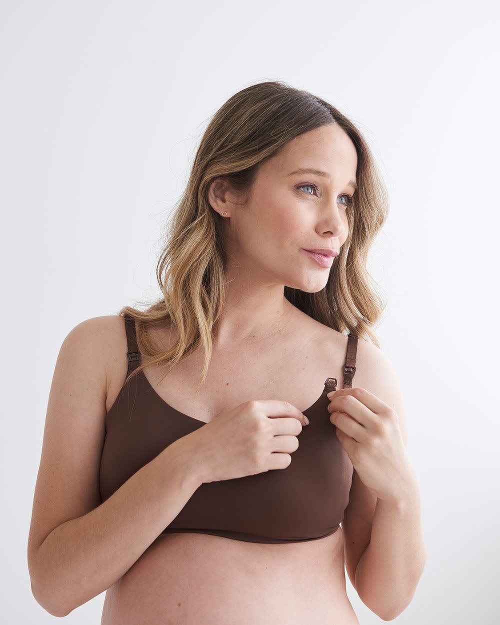 ** Our sling hook closure at the back features 4 rows as opposed to the usual 3, to ensure optimal fit for your fluctuating size through the nursing stage.