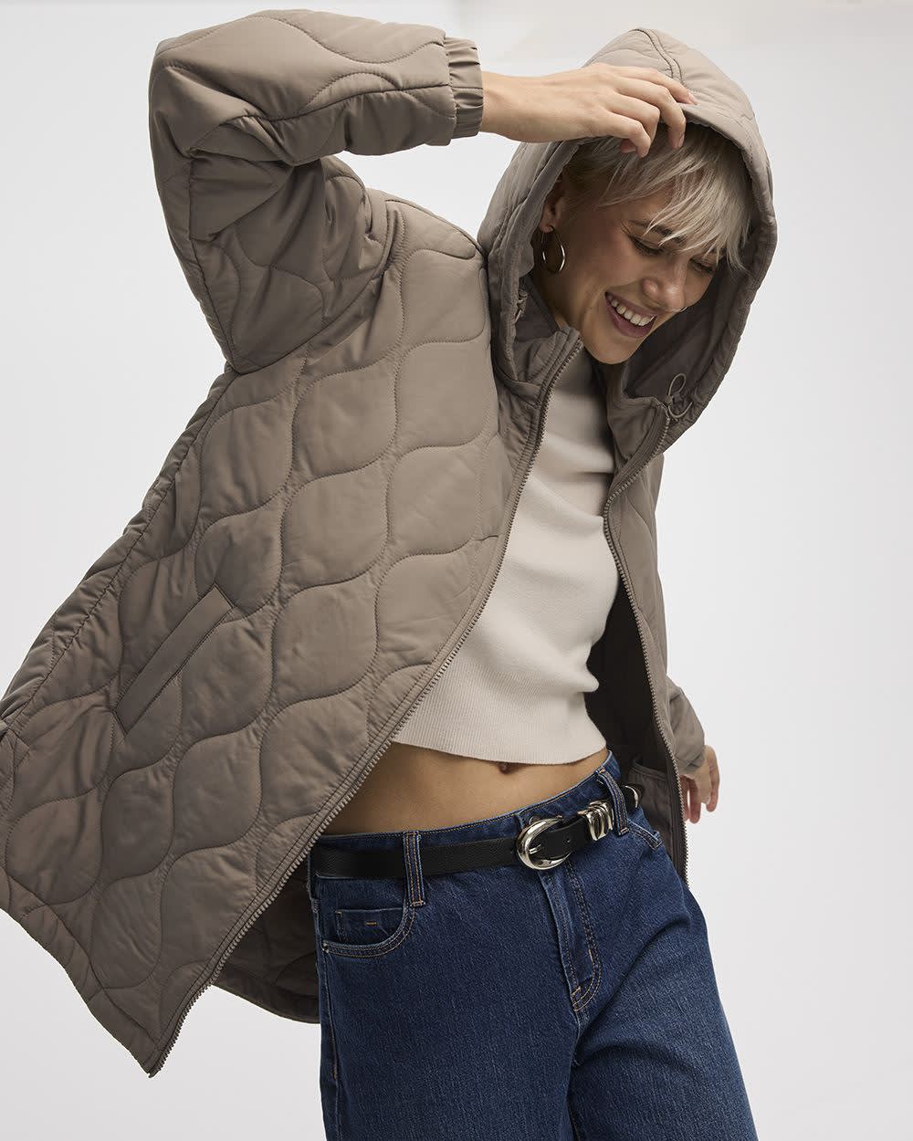 An absolute must-have when temperatures are chilly. Made with a removable hood, this quilted jacket is perfect to bring along whenever you think you might need an extra layer of warmth.
