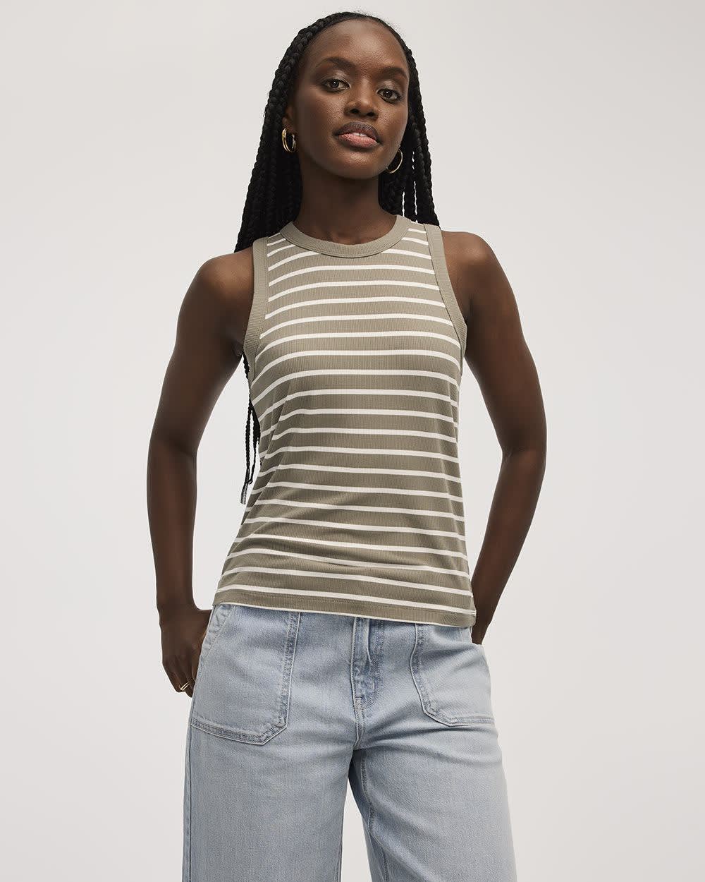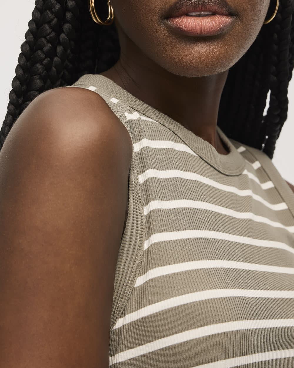 "This ribbed crew-neck tank is a definite essential to add to your wardrobe made in a soft and responsible fabric for ultimate comfort.