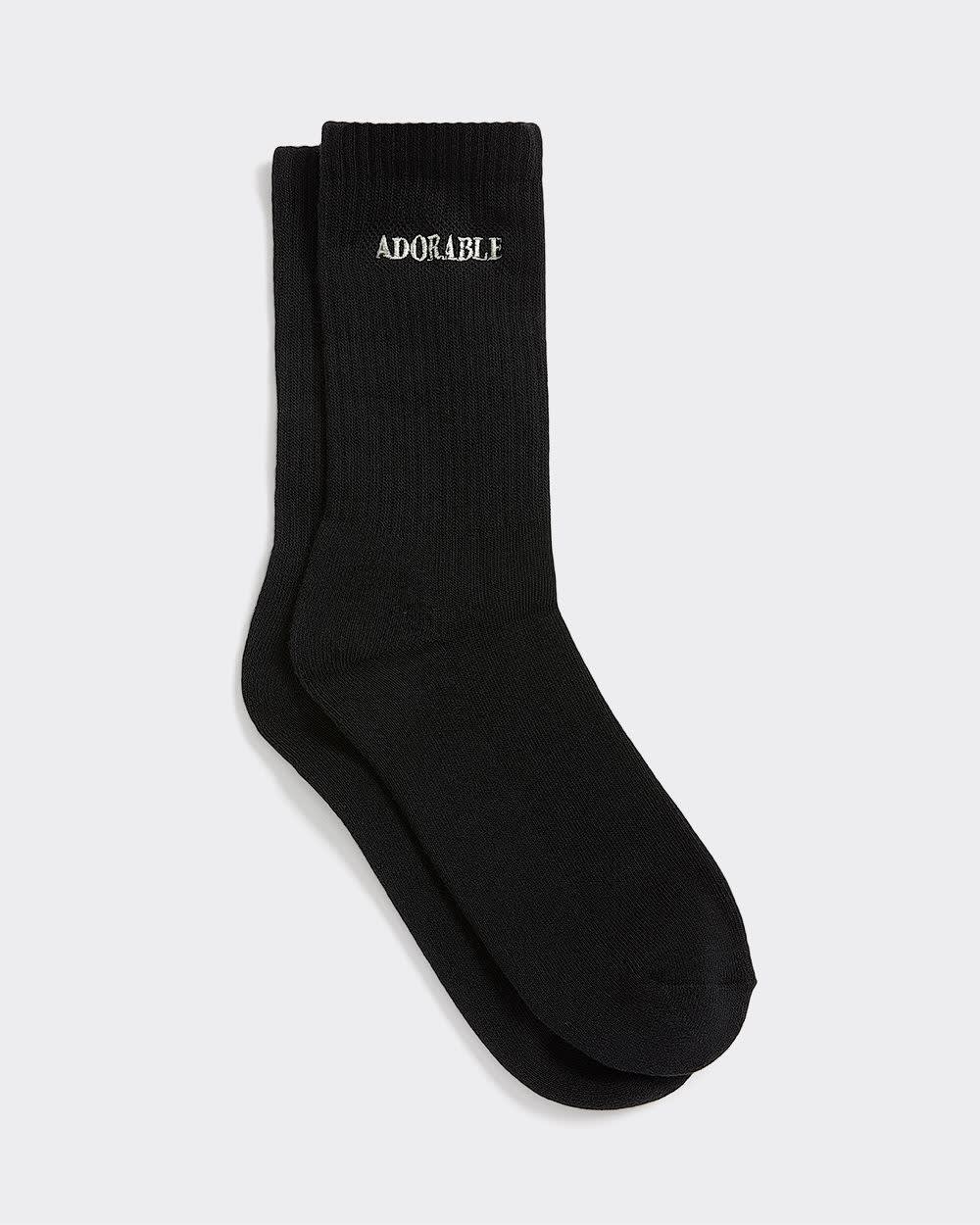 Add a touch of style to your look with this pair of soft cotton-blend socks featuring an embroidered word at the hem.