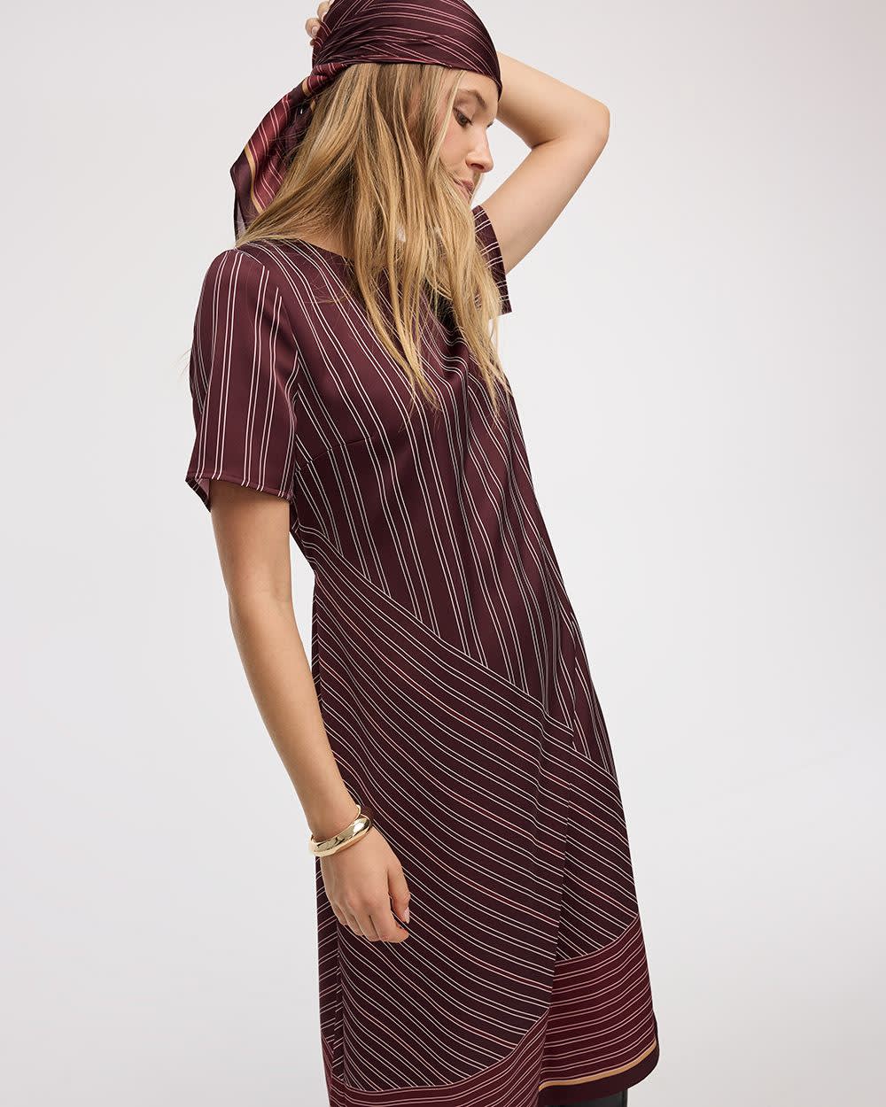 This beautiful shift dress featuring a self-tie sash is definitely an essential to add to your seasonal wardrobe for a quick and easy trendy style.