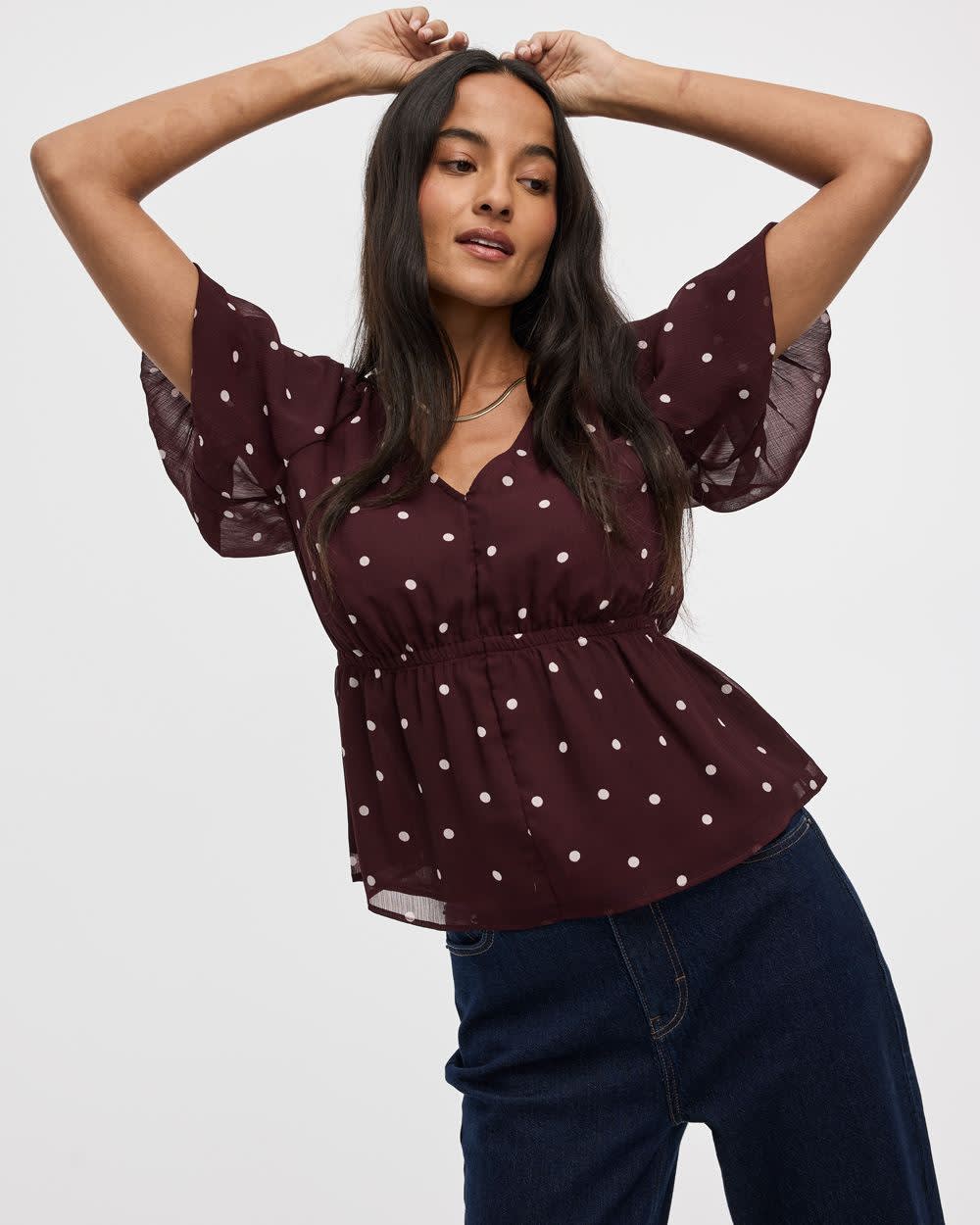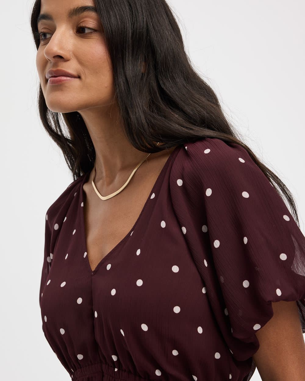 Elegant and feminine, this lovely V-neck blouse, featuring lovely bubble sleeves, is a great piece for your everyday life.