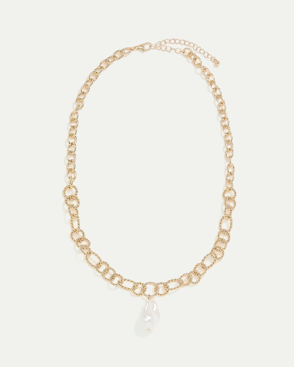 "Super elegant, this short necklace, featuring a cable chain and a beautiful pearl pendant, is sure to add some undeniable style to your outfit.