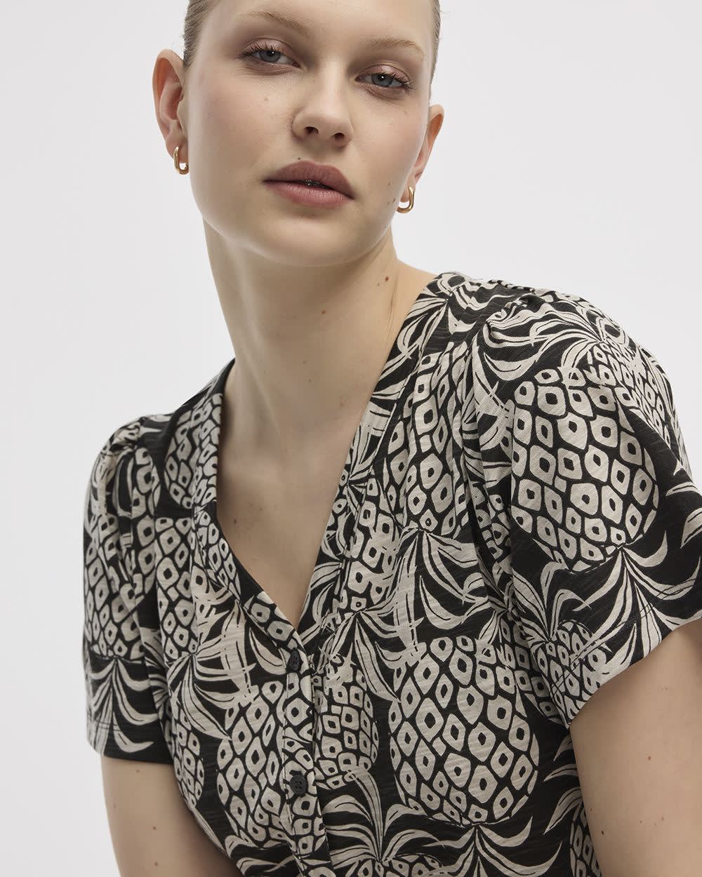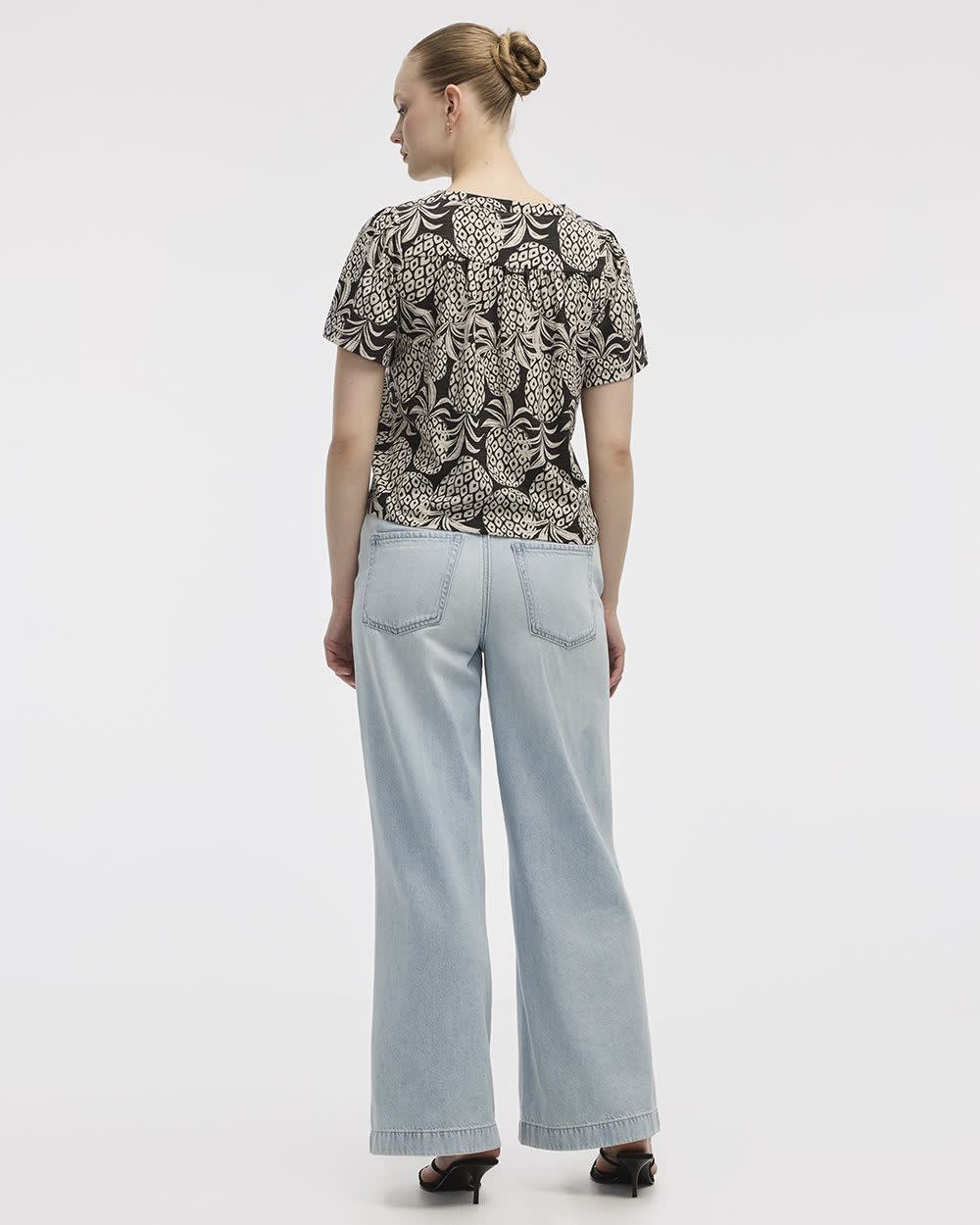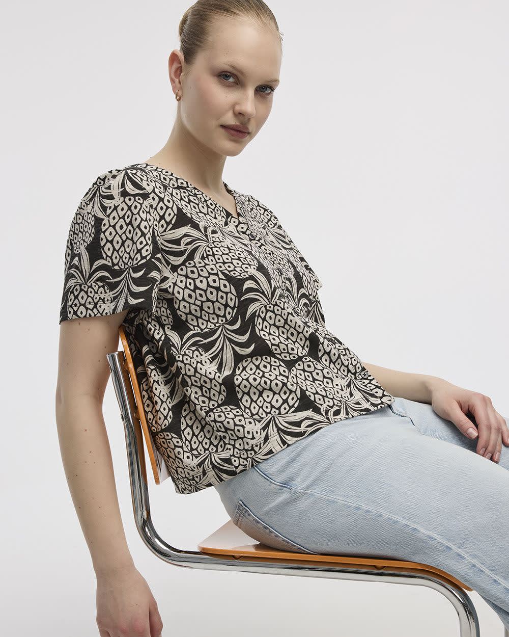 Short-Flutter-Sleeve V-Neck Buttoned-Down Blouse