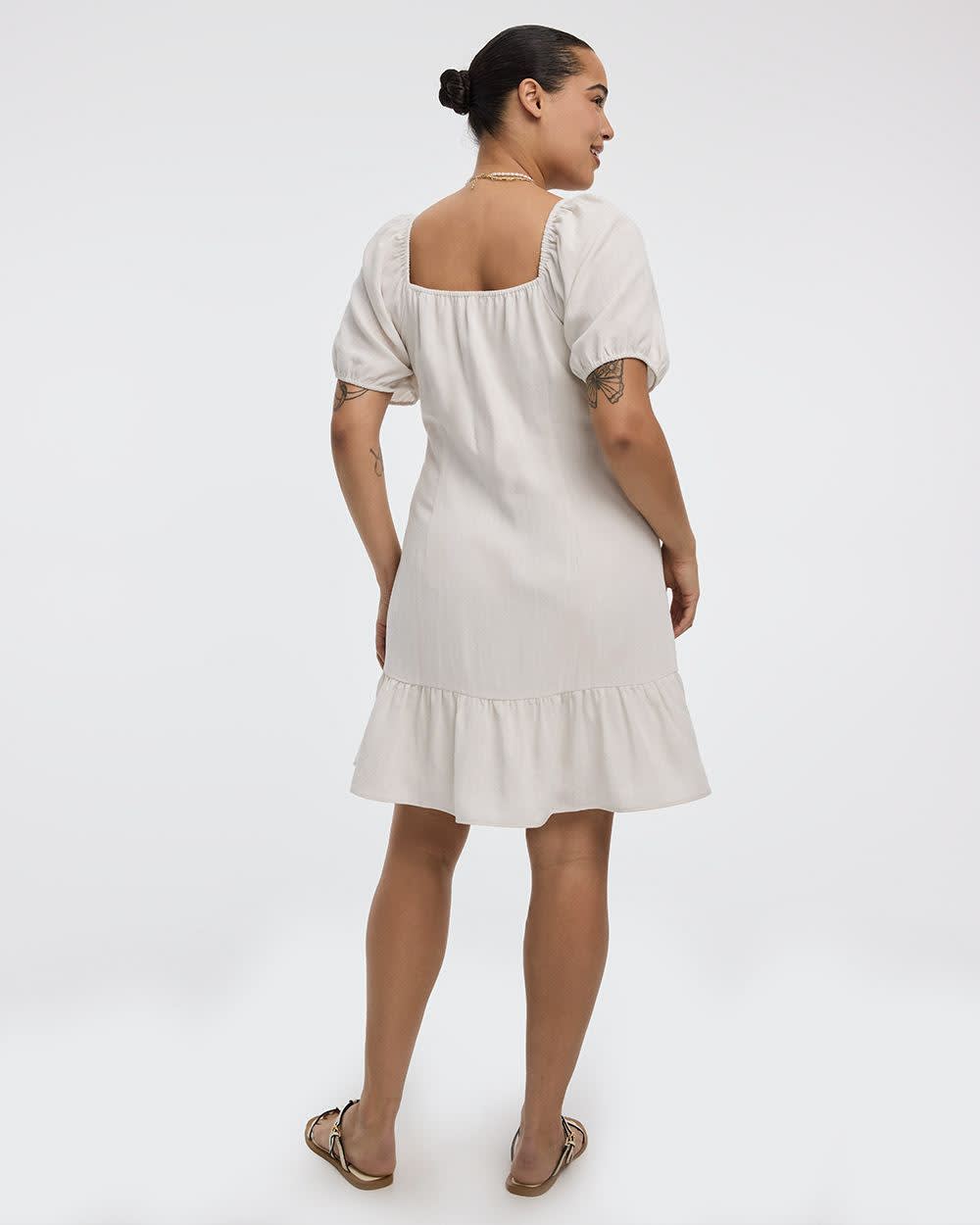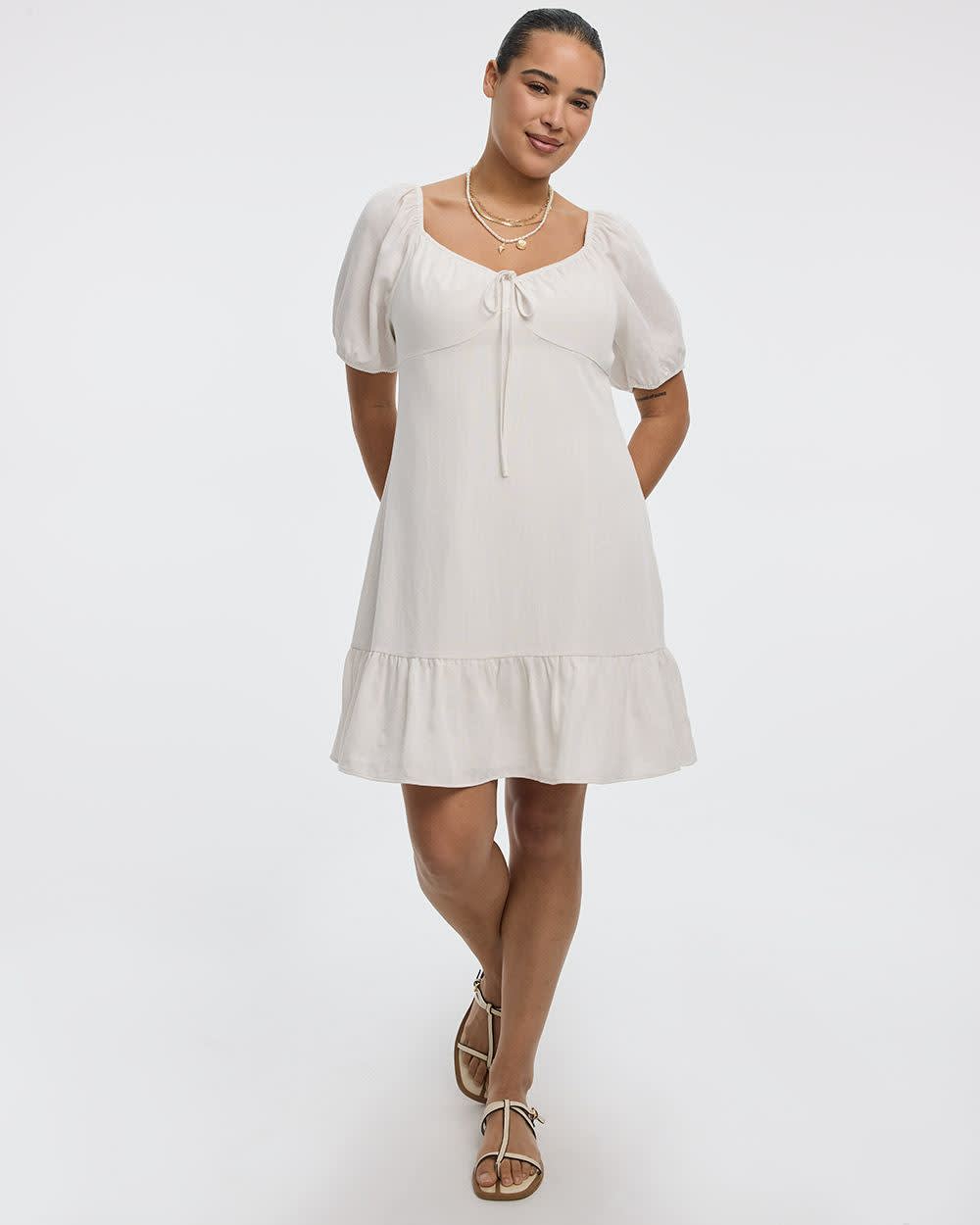 Short-Puffy-Sleeve Dress with Sweetheart Neckline