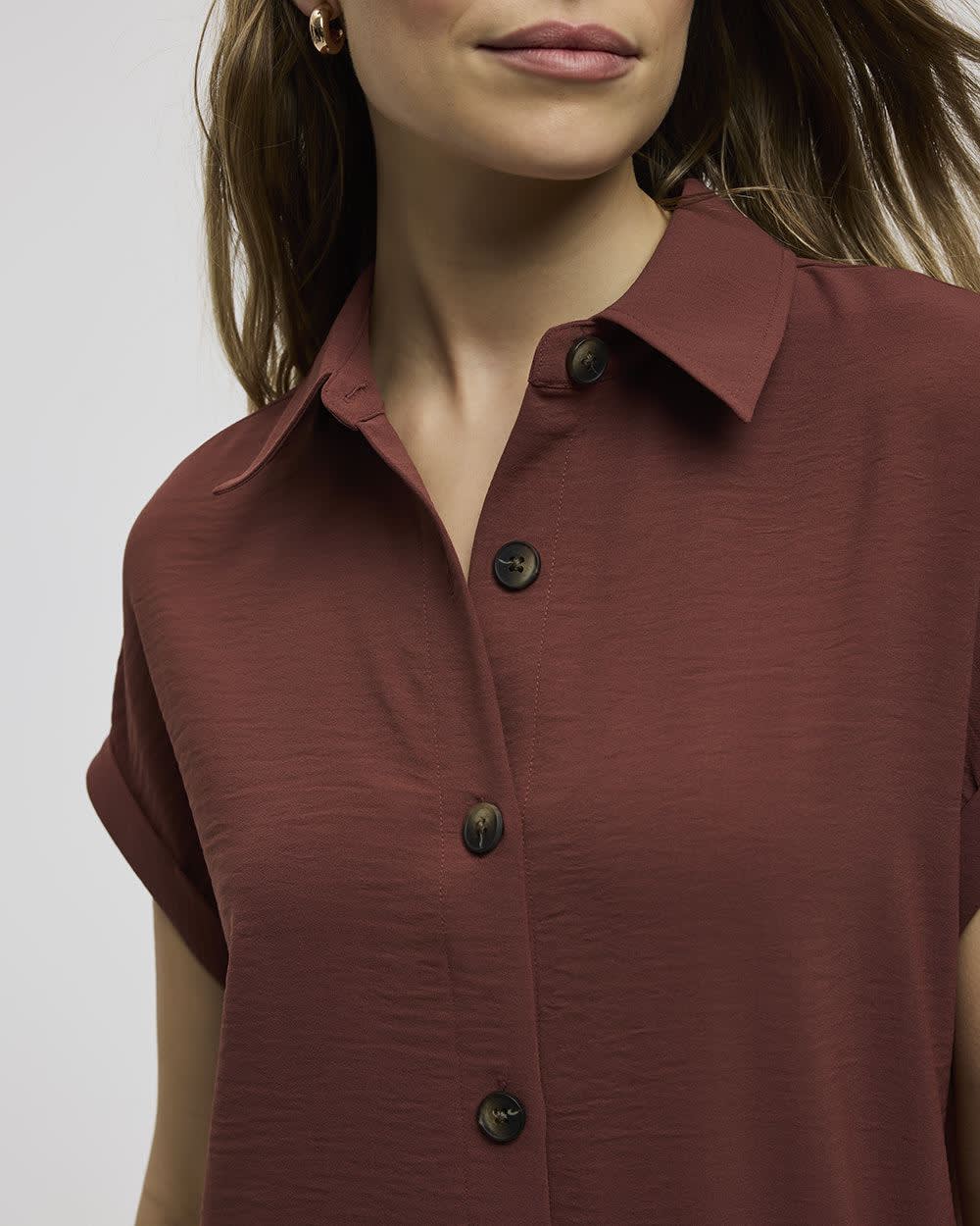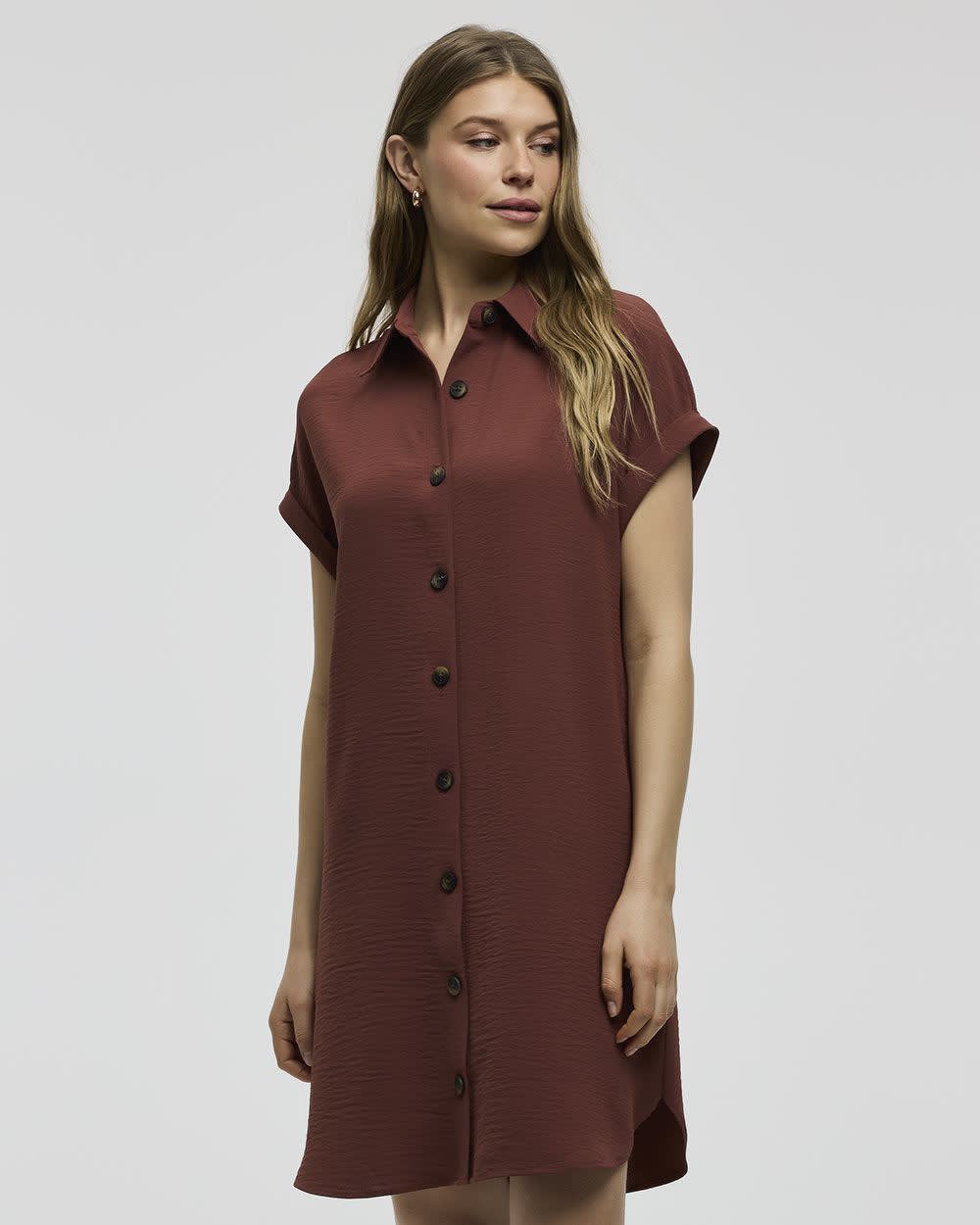 Short-Sleeve Buttoned-Down Dress with Shirt Collar