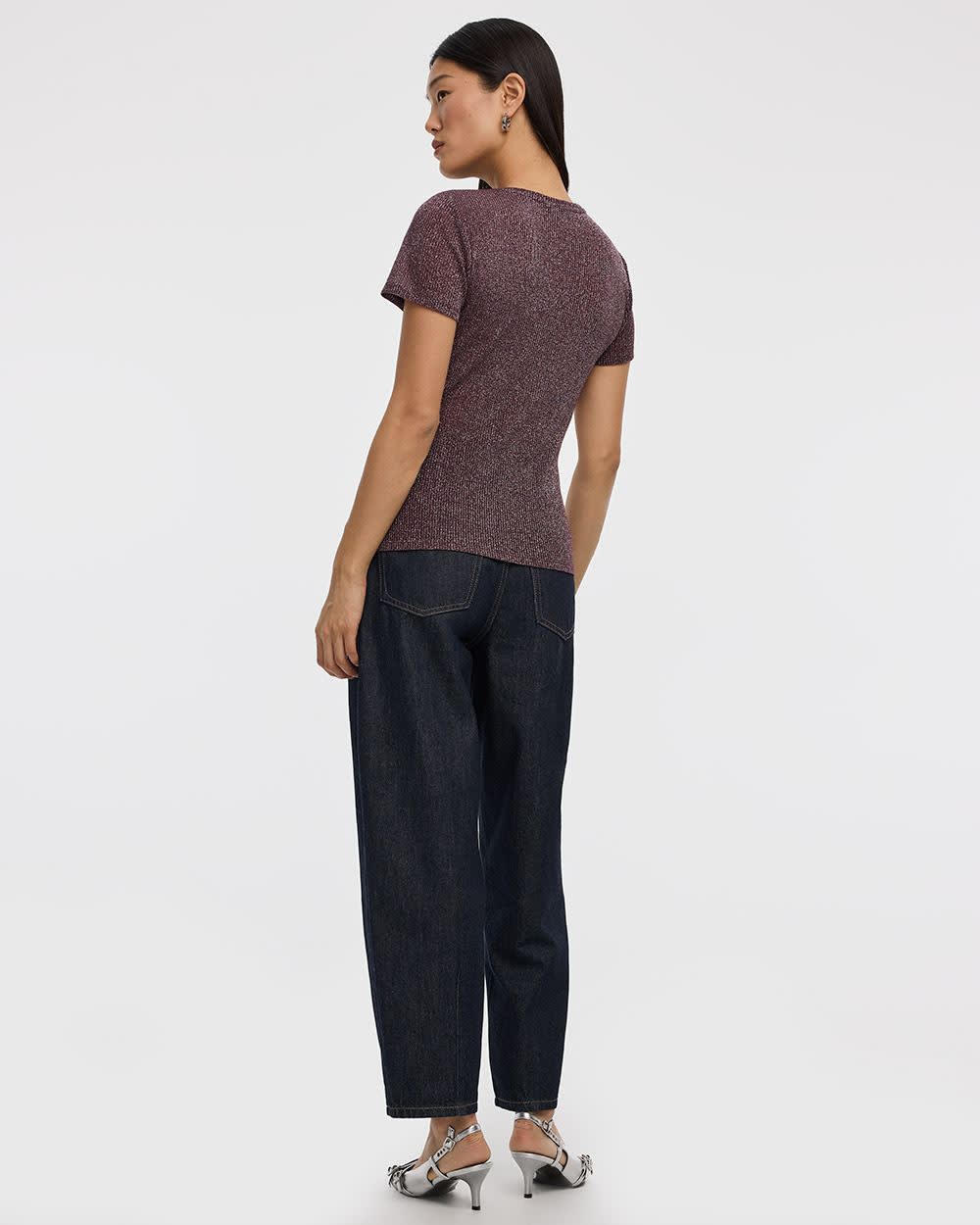 This adorable fitted short-sleeve top designed with metallic fibres that give it a shimmery effect is ideal for a night out or the holiday season. Pairs perfectly with your favourite jeans.