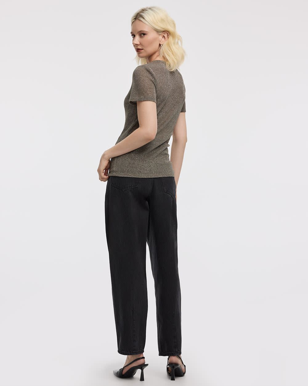 This adorable fitted short-sleeve top designed with metallic fibres that give it a shimmery effect is ideal for a night out or the holiday season. Pairs perfectly with your favourite jeans.