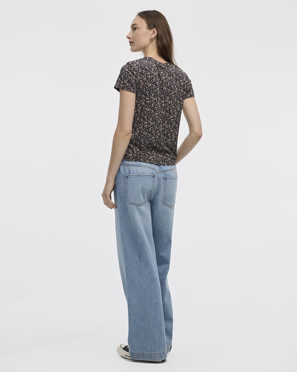 "This crew-neck tee, decorated with a beautiful print, is a definite essential to add to your wardrobe.