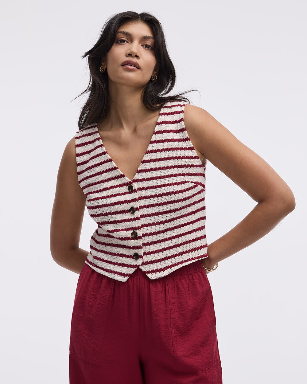 For the true fashionista out there, this striped knit vest is sure to enhance your style. Wear it by itself or over a blouse, with dressy pants for a professional look or opt for a casual denim skirt for a trendy style that is sure to stand out.