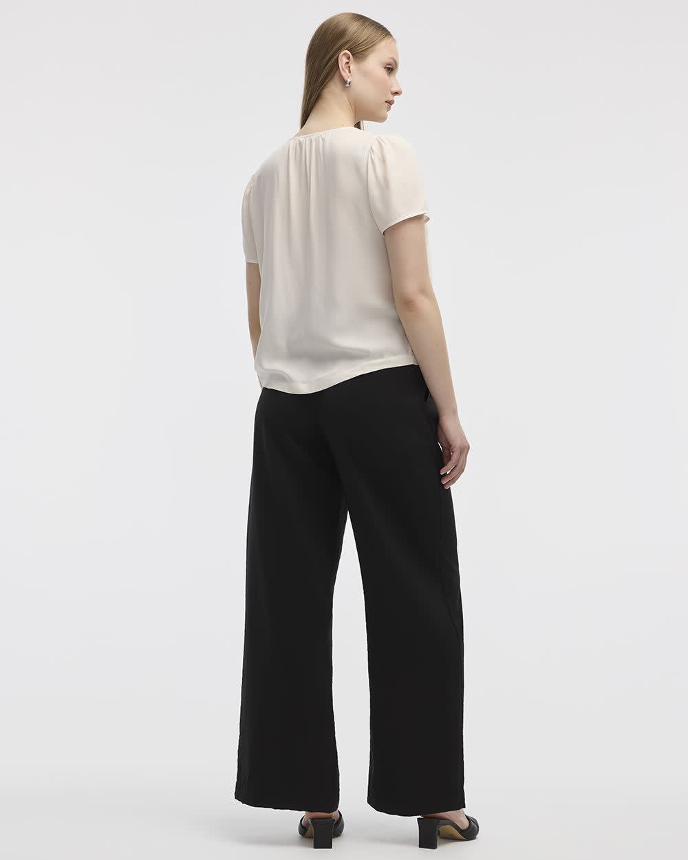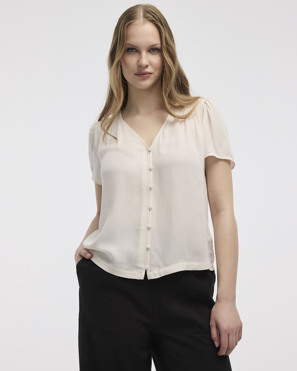 V-Neck Buttoned-Down Blouse with Short Flutter Sleeves