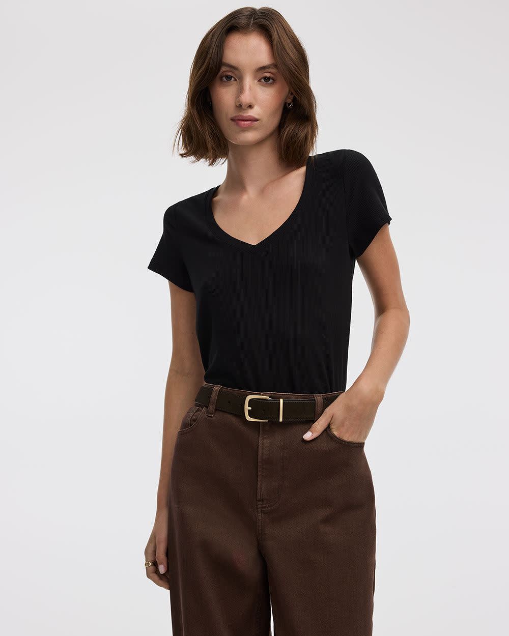 This ribbed V-neck tee is a definite essential to add to your wardrobe, made in a soft and durable fabric for ultimate comfort.