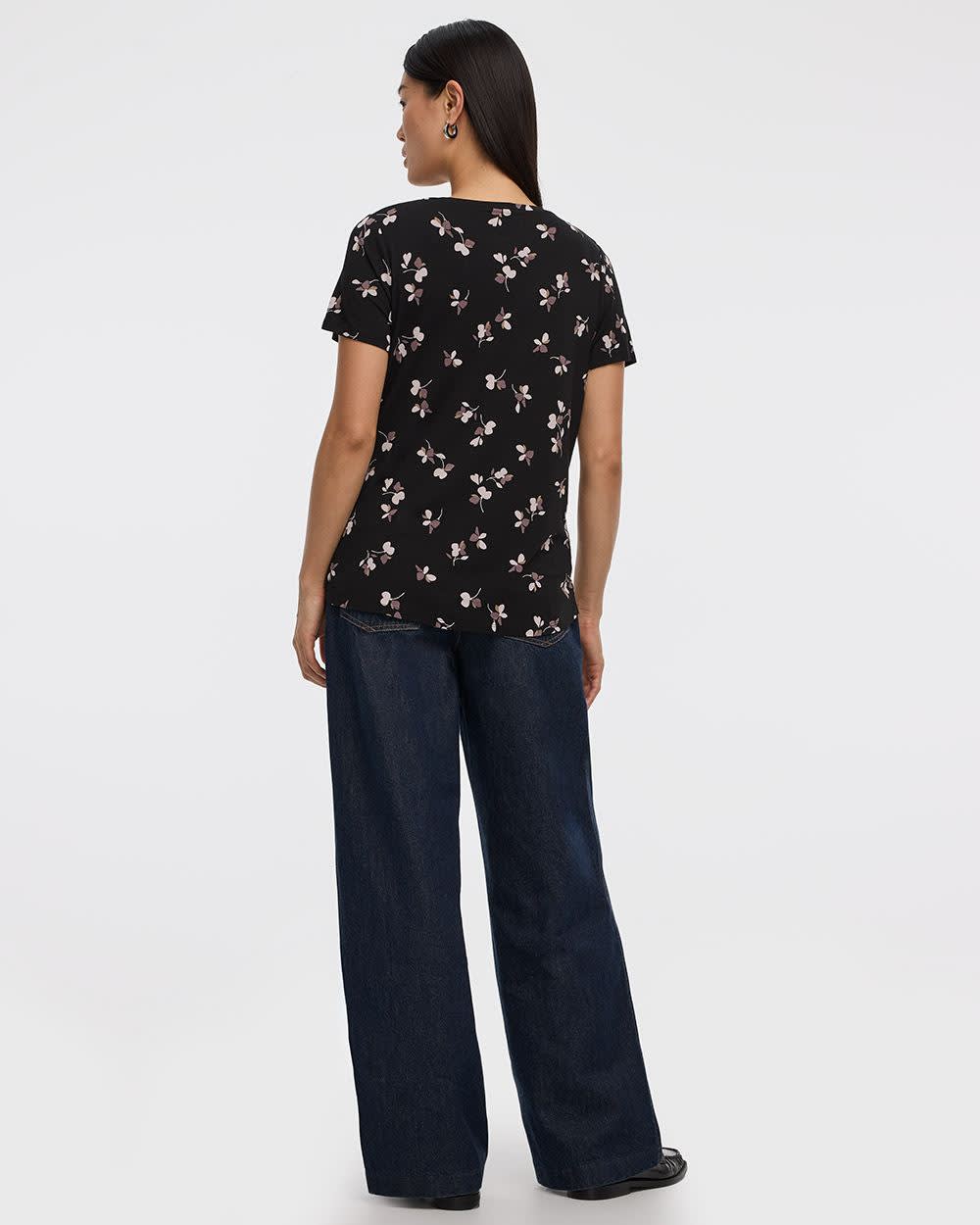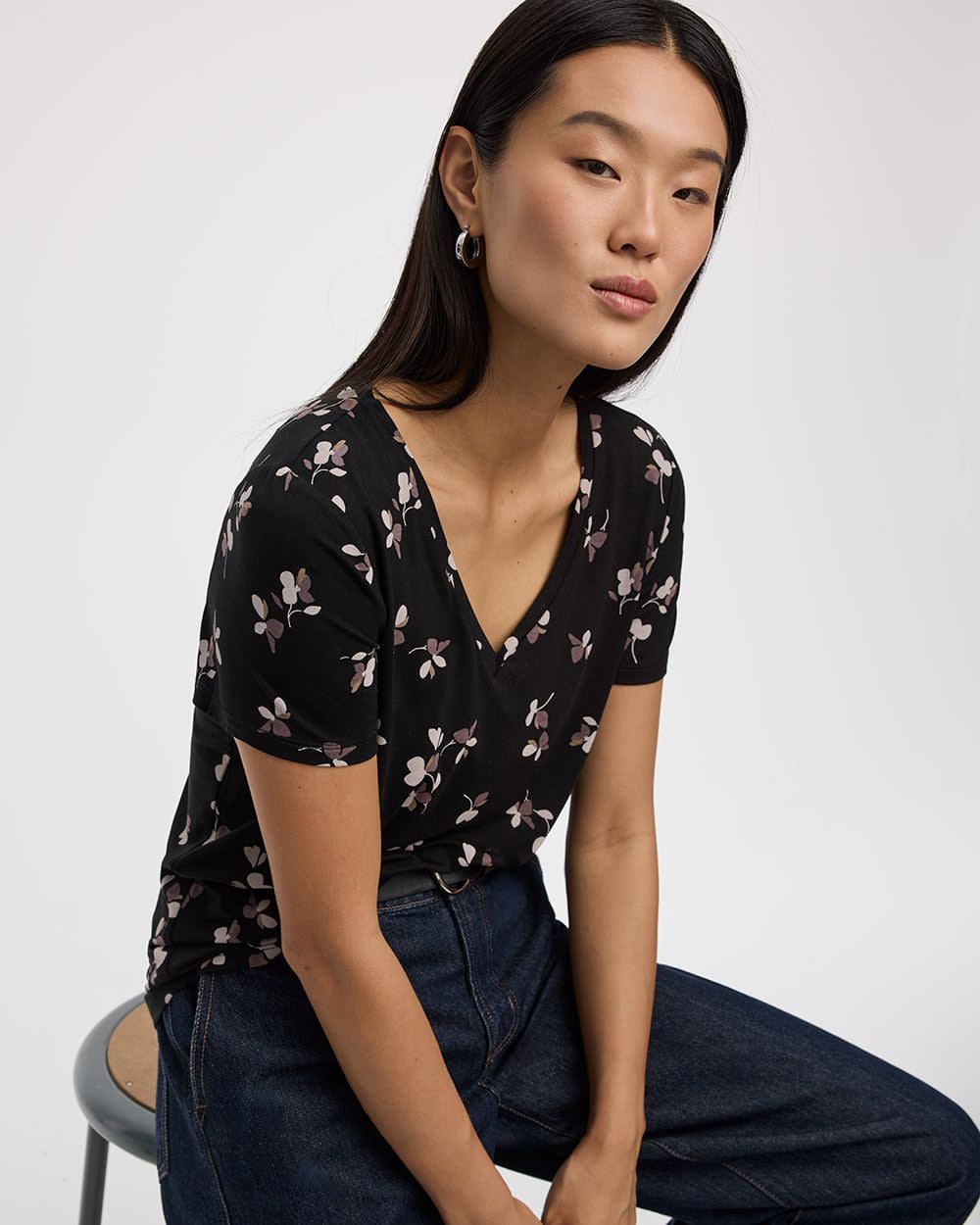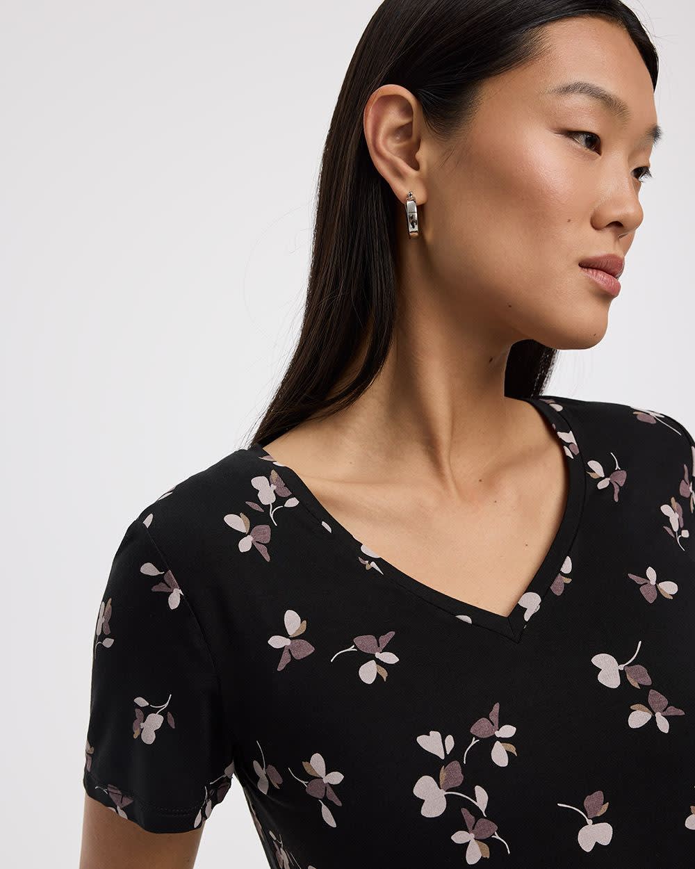 This V-neck tee, decorated with a beautiful print, is a definite essential to add to your wardrobe.
