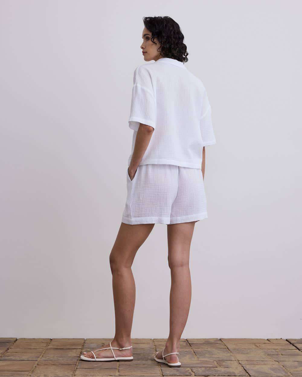 This short-sleeve waffled shirt topped with a pyjama collar pairs perfectly with any bottom, for a casual or chic look.