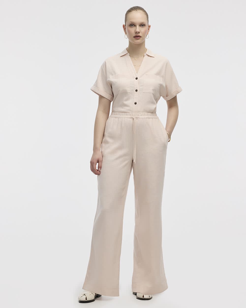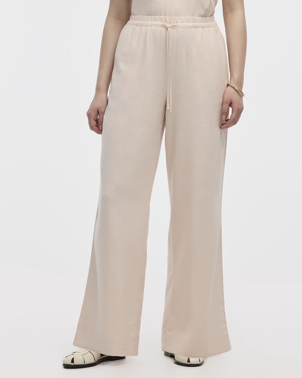 Wide-Leg High-Rise Linen Blend Pant - Petite