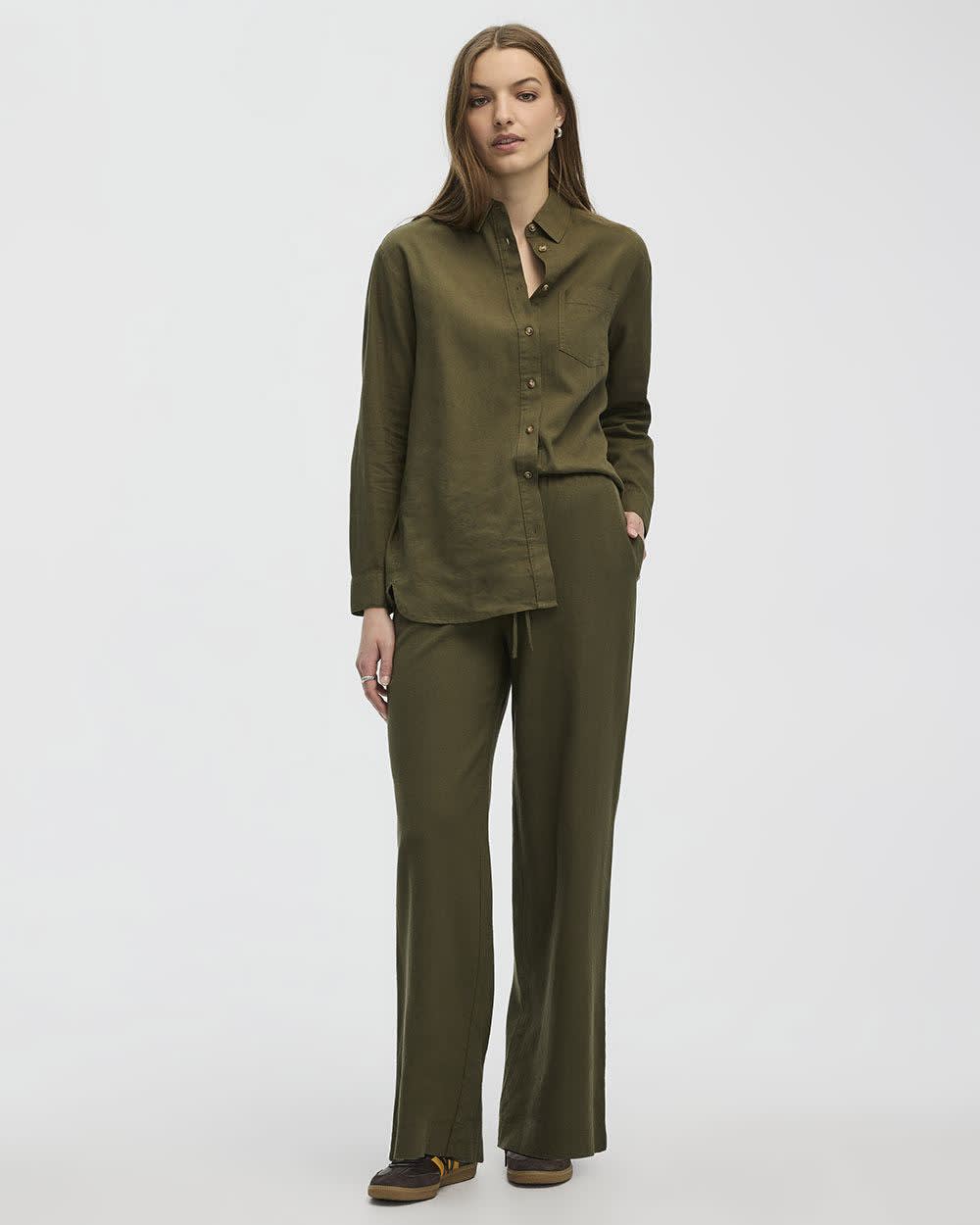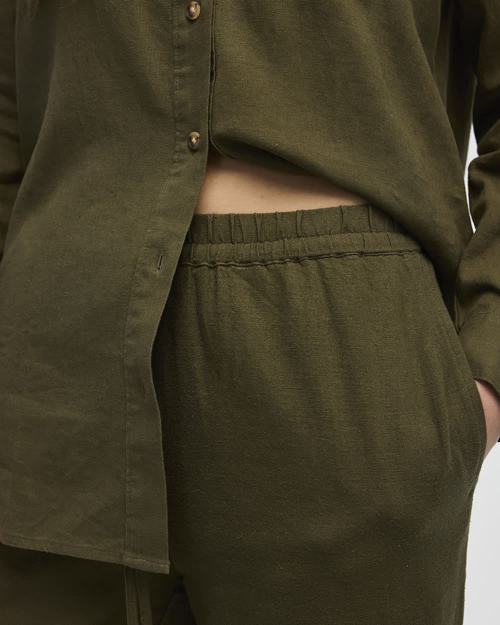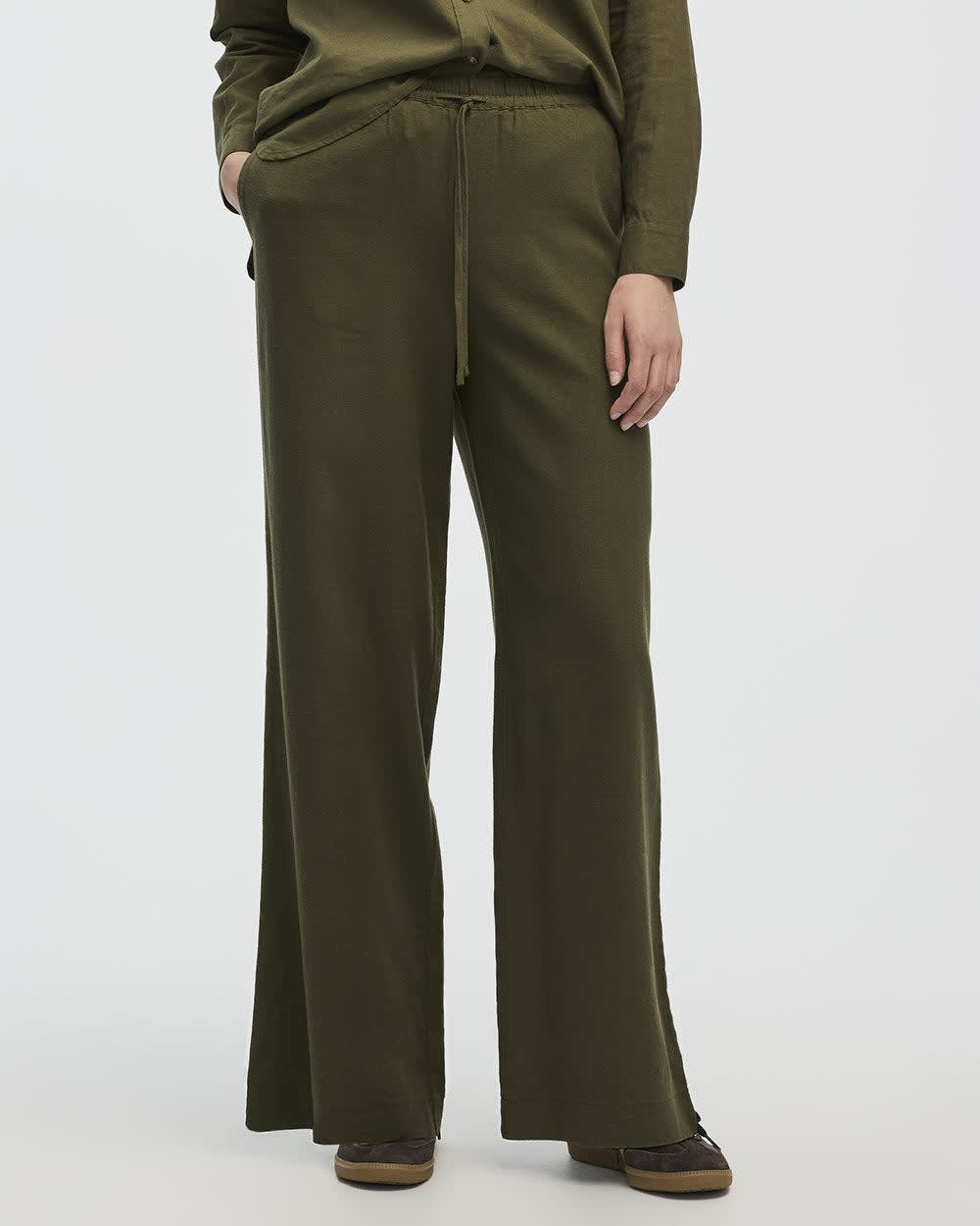 "This perfect wide-leg pant will quickly become one of your favourite bottoms. Made in a soft linen fabric for absolute comfort all day long.