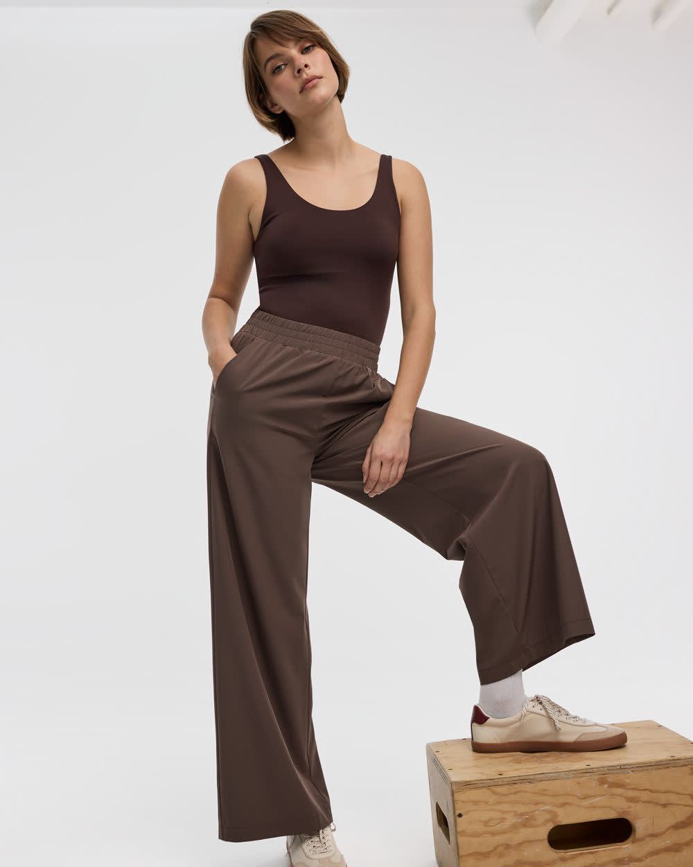 Made in a super comfortable stretch and lightweight fabric, these pull-on wide-leg pants are just what you need for travelling days.