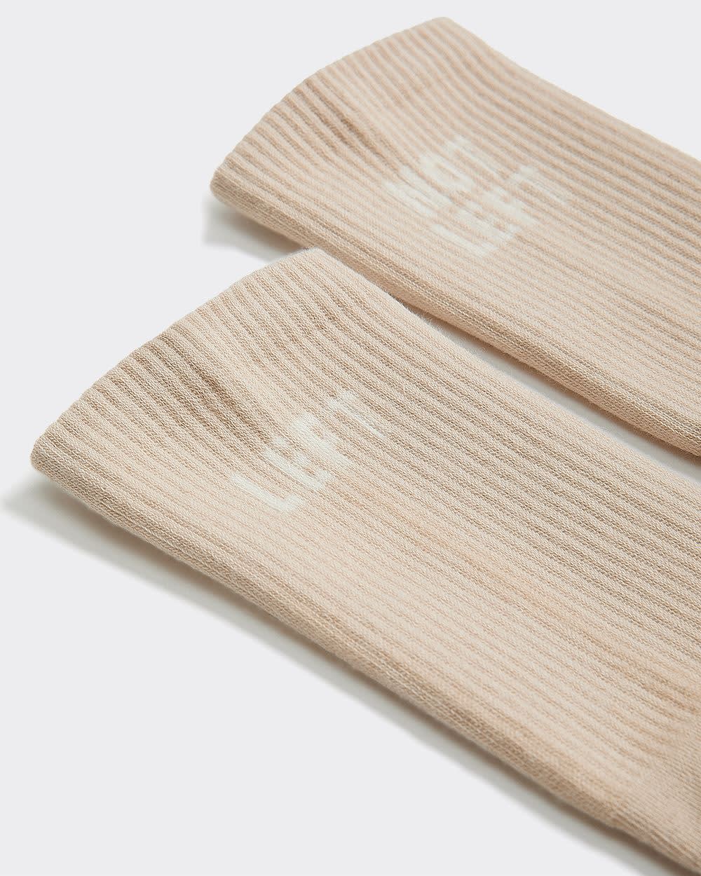 Ajoutez une touche de style à votre tenue avec cette paire de bas en coton doux décorée d'une citation à l'ourlet.
