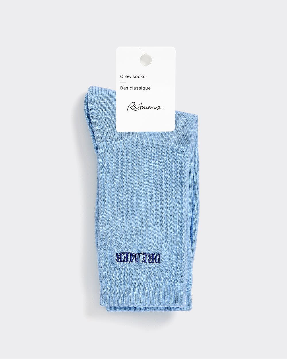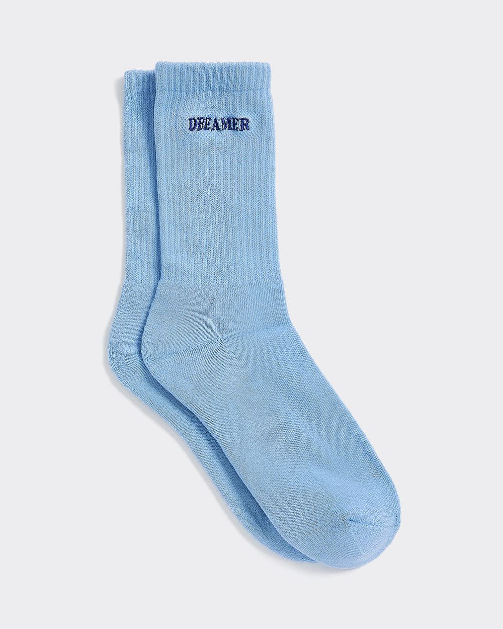 Ajoutez une touche de style à votre tenue avec cette paire de bas en coton doux décorée d'un mot brodé à l'ourlet.