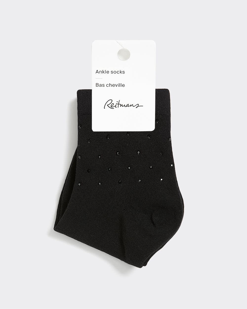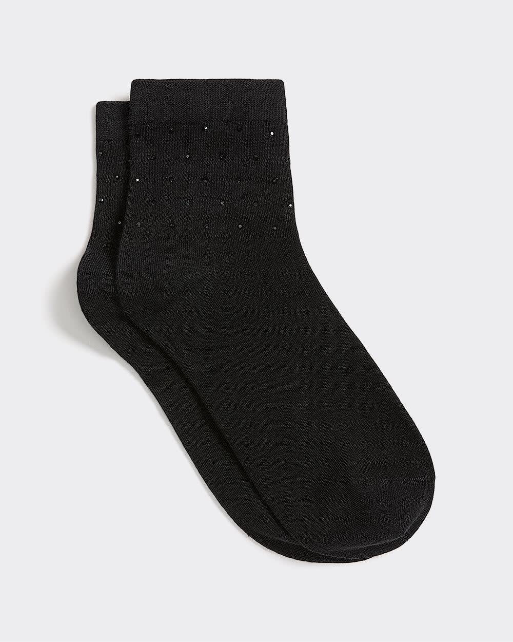 Ajoutez une touche de style à votre tenue avec cette paire de bas en coton doux décorée de strass scintillants à l'ourlet.