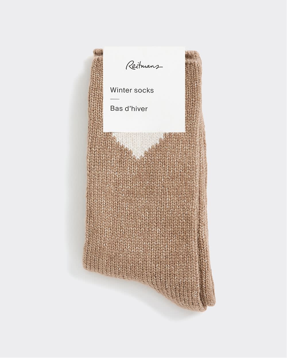 Gardez vos pieds bien au chaud cet hiver avec ces superbes chaussettes en jacquard décorées d'un joli coeur à l'ourlet.