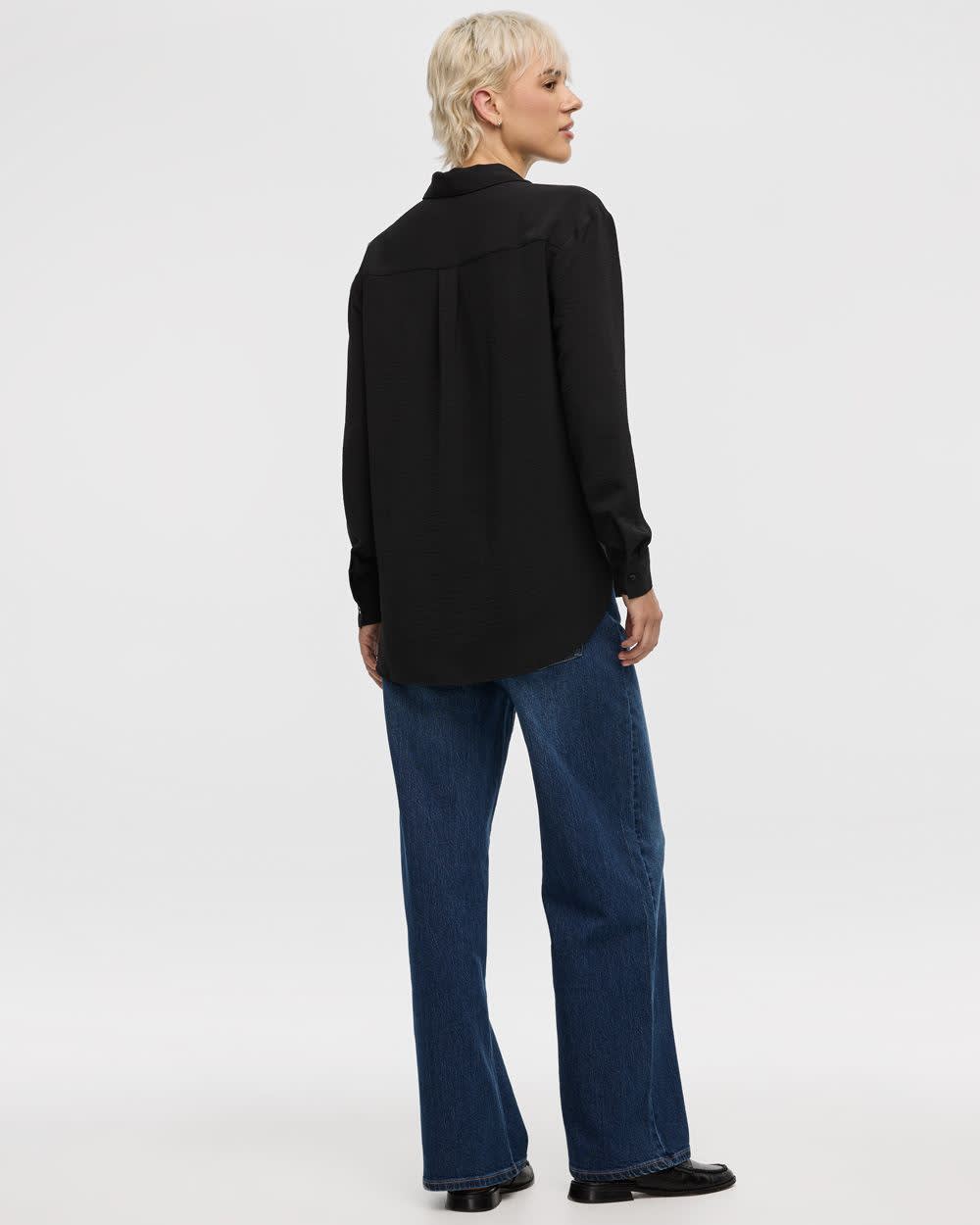 Cette superbe blouse à boutonner conçue en doux tissu Airflow et dotée d'un classique col chemisier ajoutera assurément de la personnalité à votre tenue.