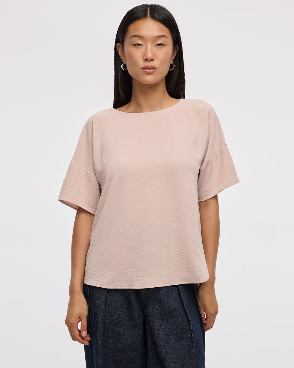 "Simple et confortable, cette classique blouse t-shirt à manches courtes est idéal pour le quotidien.