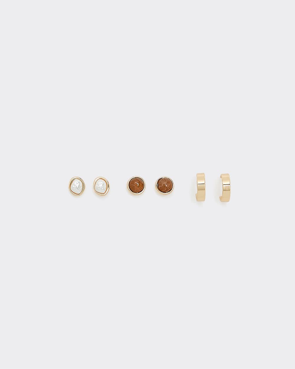 Boutons d'oreilles et anneaux - 3 paires