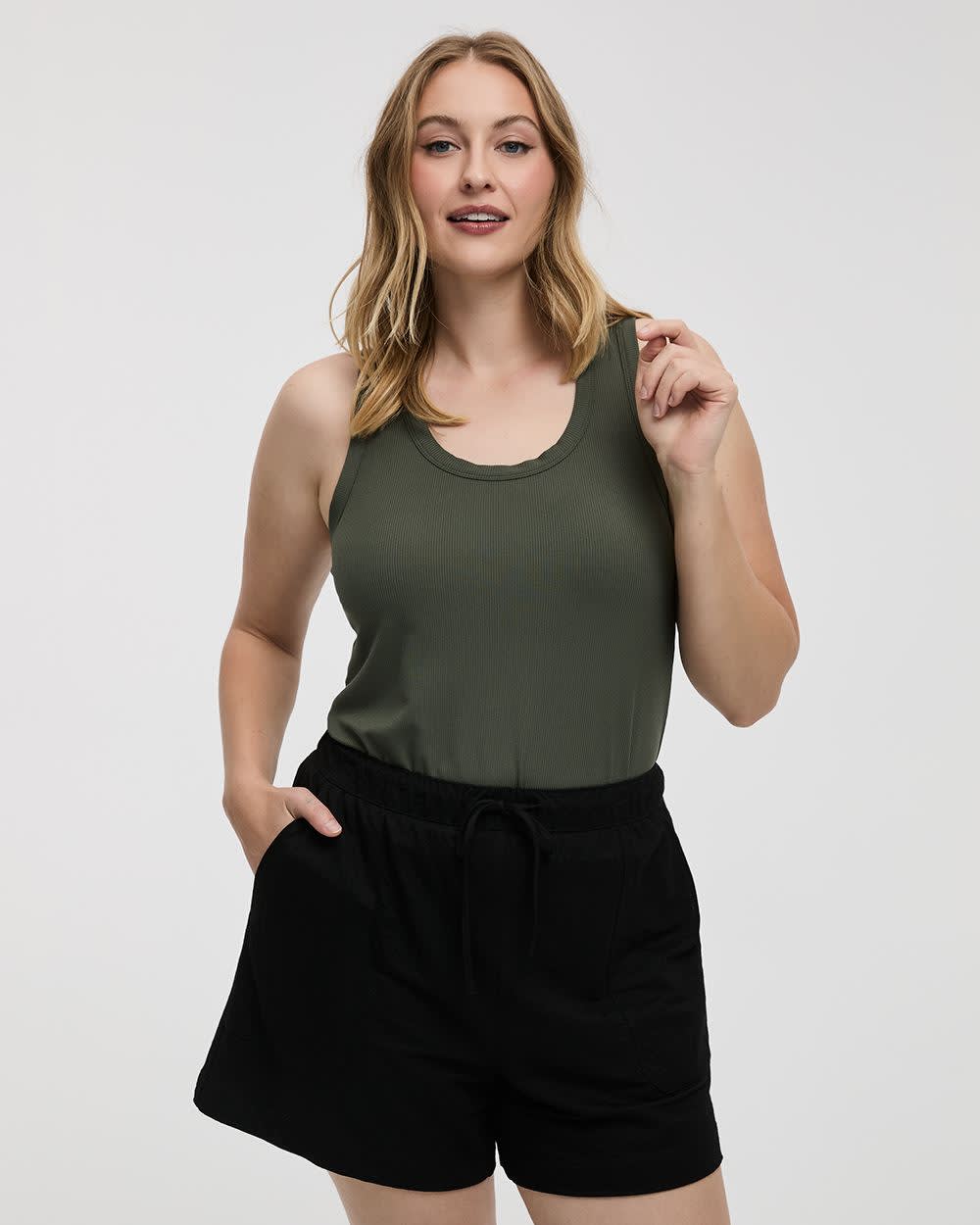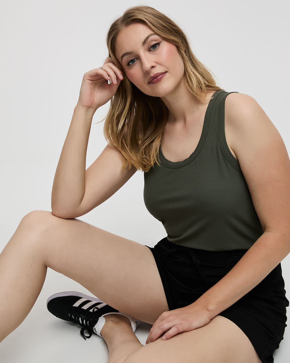 - Tricot côtelé extensible : contient 90% de fibres EcoCosy (MC)