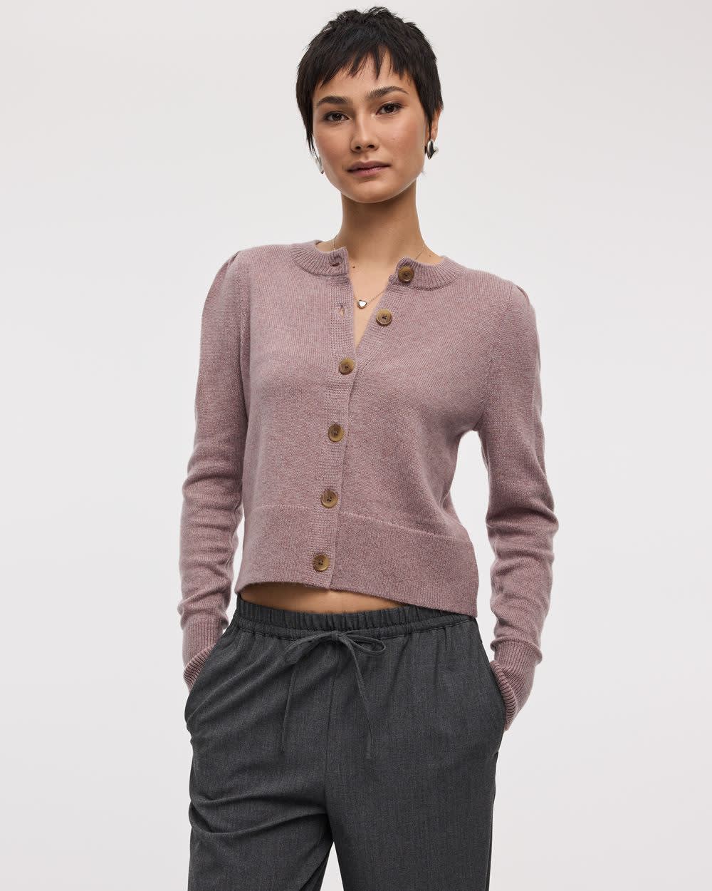 Ce cardigan à col rond est idéal pour la vie de tous les jours, conçu en doux mélange de cachemire pour un confort douillet.