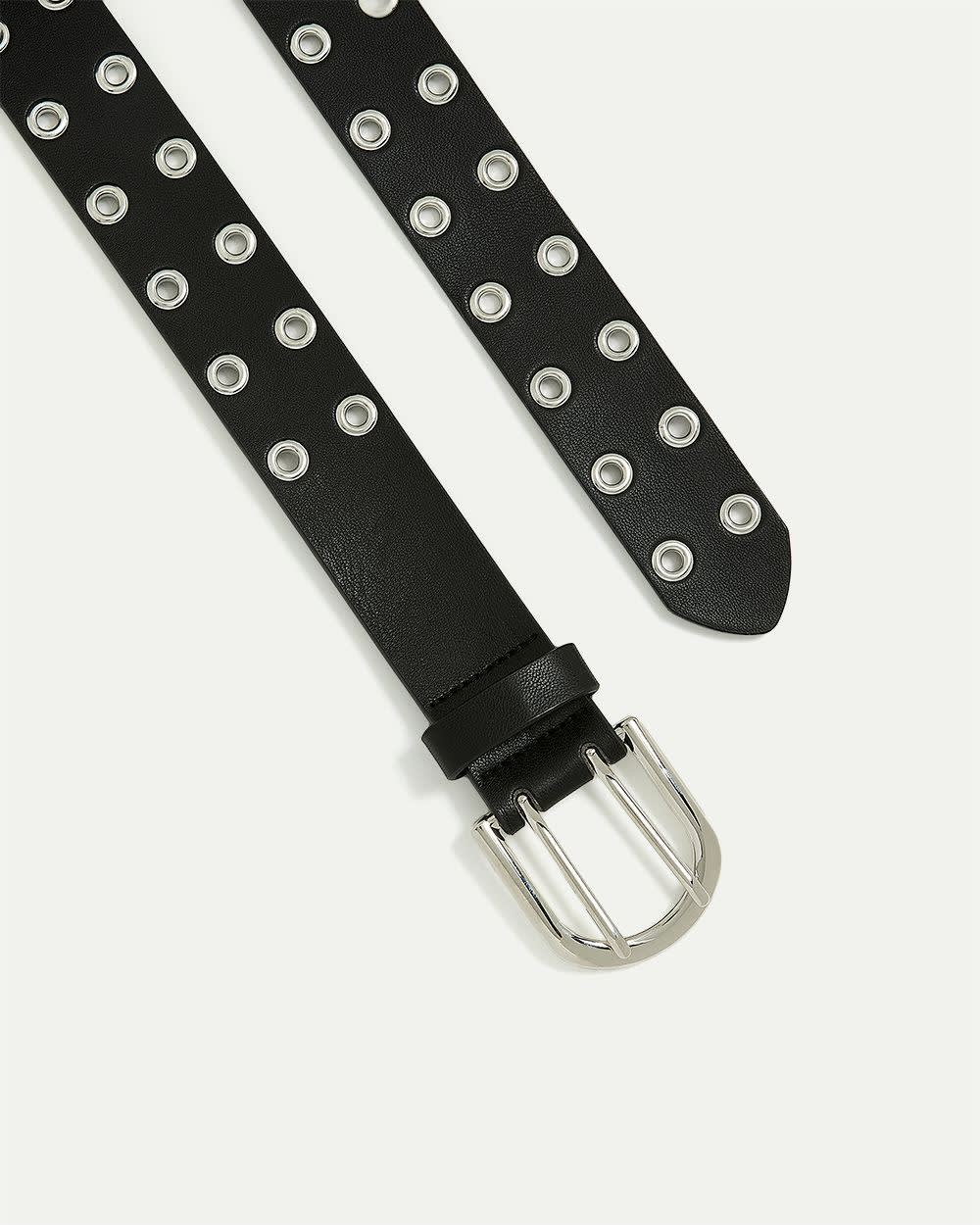 "Cette jolie ceinture en faux cuir dotée recouverte d'oeillets est l'accessoire idéal pour ajouter une touche tendance à votre tenue.