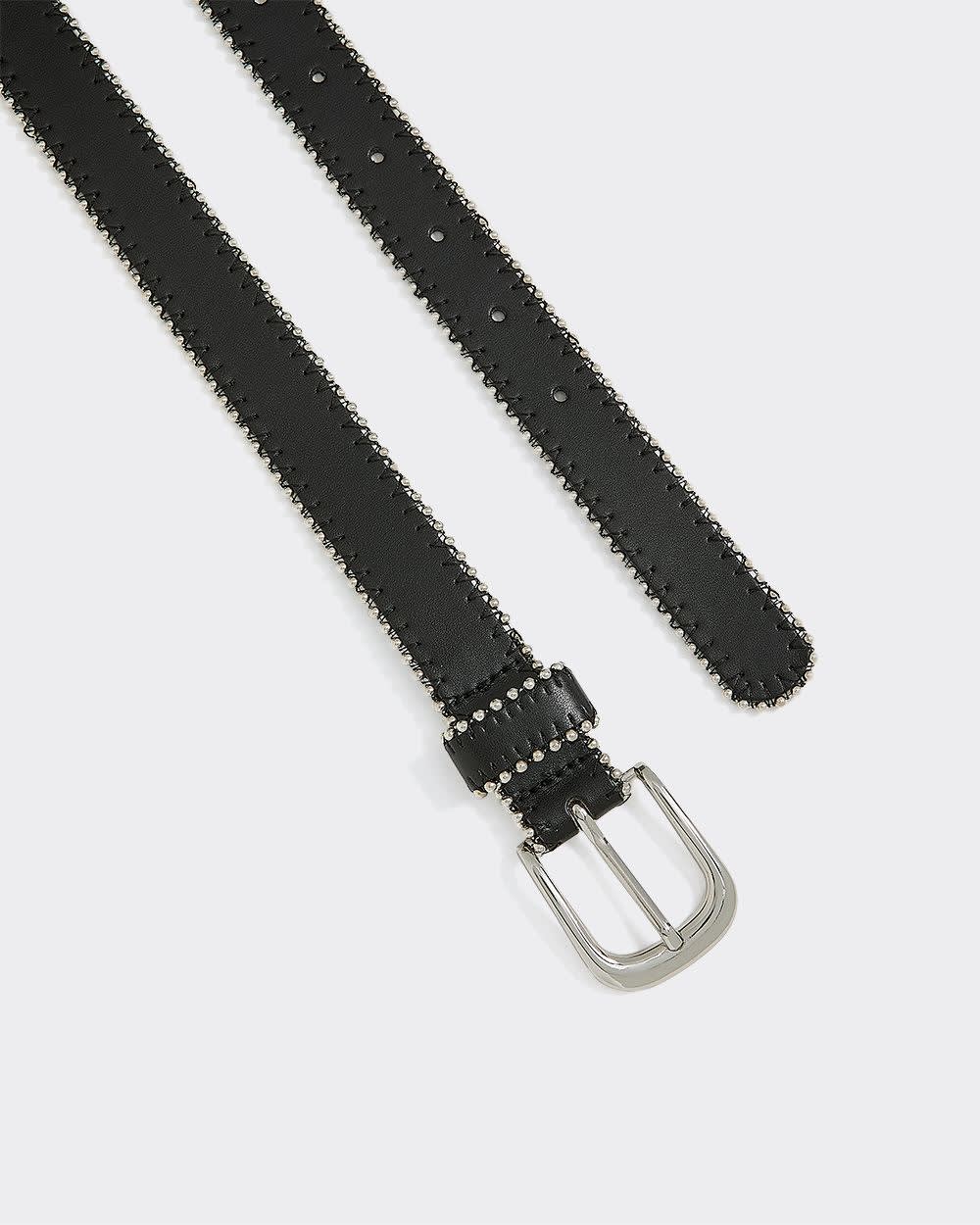 Rehaussez vos tenues avec cette ceinture en faux cuir ornée de billes argentées qui lui procurent une touche chic et festive.